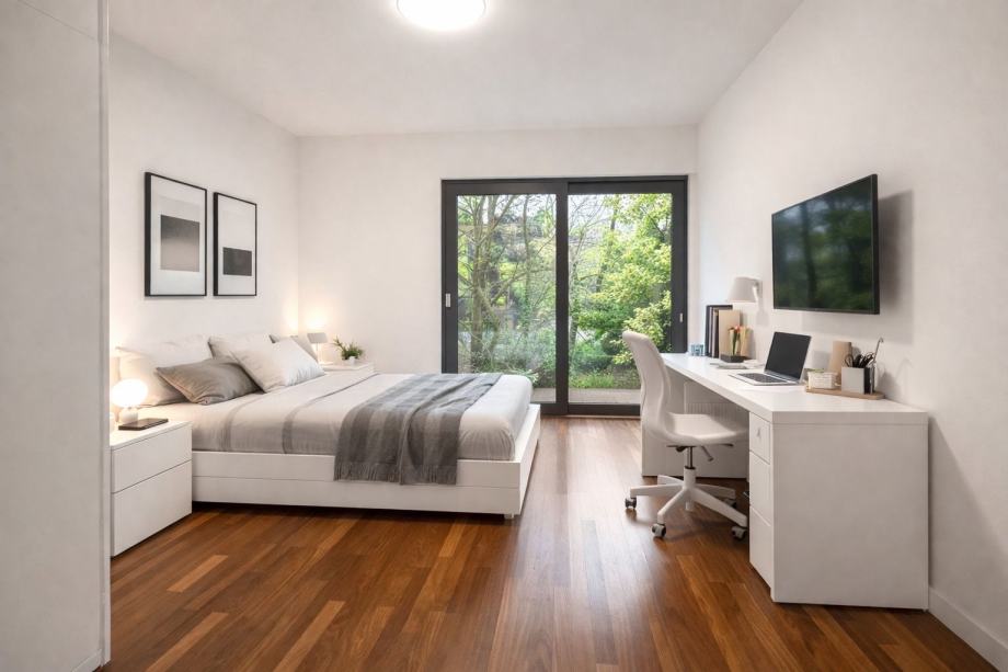 Stan raspolaže s četiri spavaće sobe velikih dimenzija, što je danas prava rijetkost na tržištu. Dvije sobe posebno se ističu svojom veličinom, a jedna od njih ima odvojenu garderobu (soba sa garderobom 21m2, soba2 18m2, soba3 12m2, soba4 11m2). Iz soba se pruža otvoren i umirujući pogled na šumu i zelenilo.