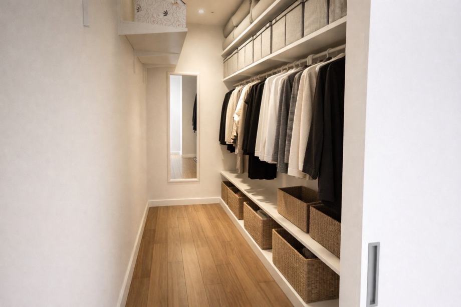 Dodatni prostori uključuju ostavu, ulazni prostor oblikovan kao garderoba te široke, komotne hodnike s predviđenim mjestima za ugradbene ormare, što dodatno naglašava osjećaj reda i prostranosti.