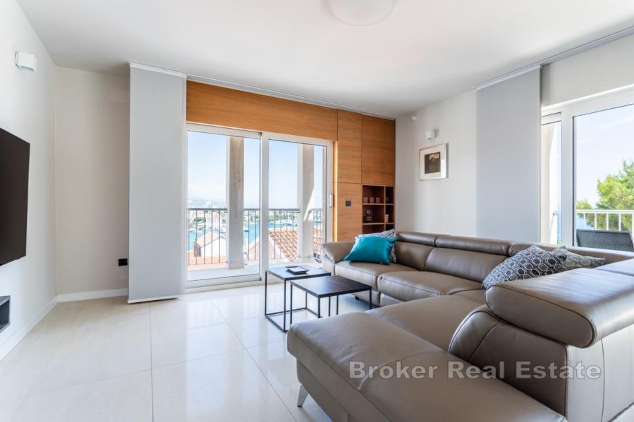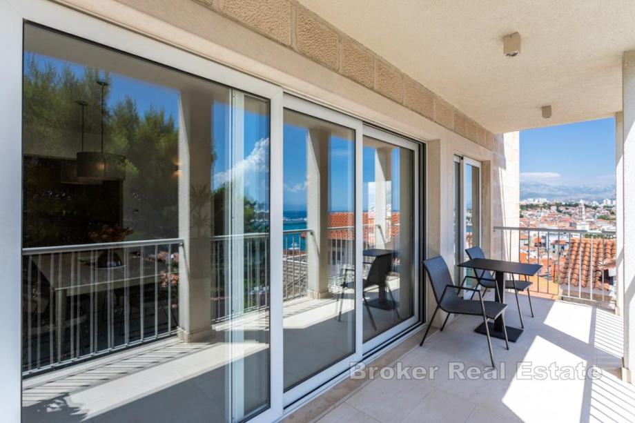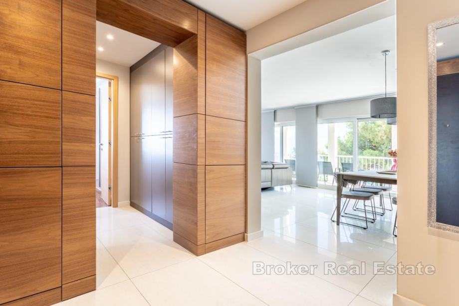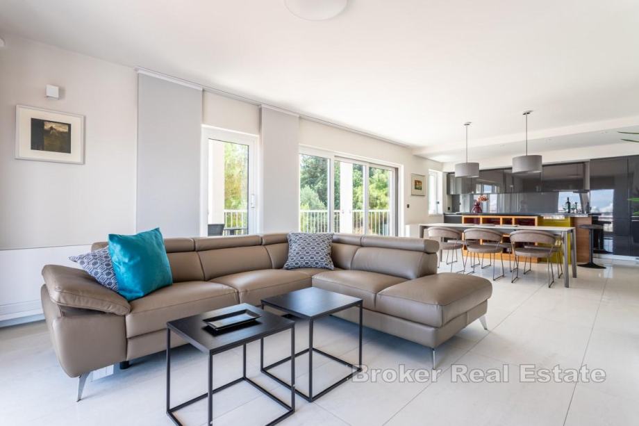 Sastoji se od tri spavaće sobe, hodnika, dva predprostora, kupaonice, dodatnog odvojenog wc-a, ostave i dnevnog boravka s kuhinjom i blagovaonicom iz kojih se pruža panoramski pogled na more i grad.