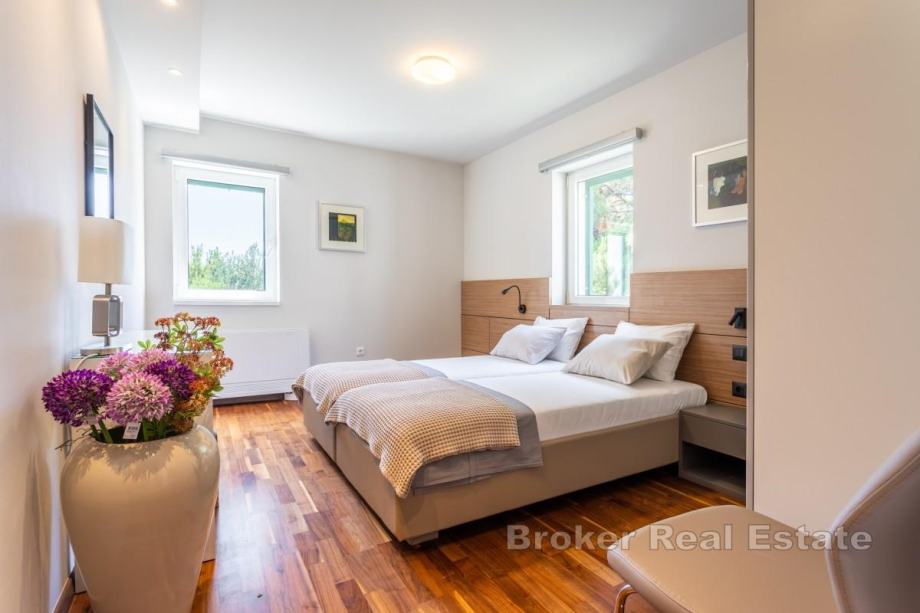 Ekskluzivan apartman na vrlo atraktivnoj lokaciji, s otvorenim pogledom na grad, luku, more i otoke. Apartman se nalazi na prvom katu kamene vile koja ukupno ima 3 stana.