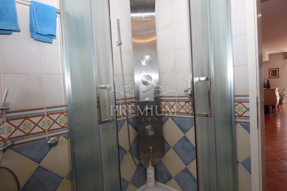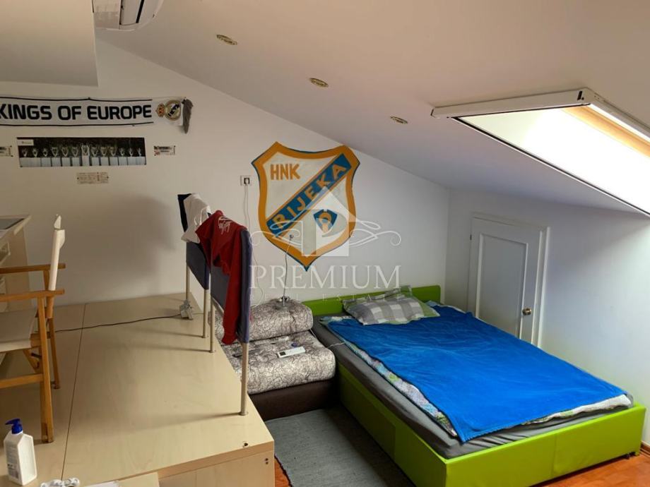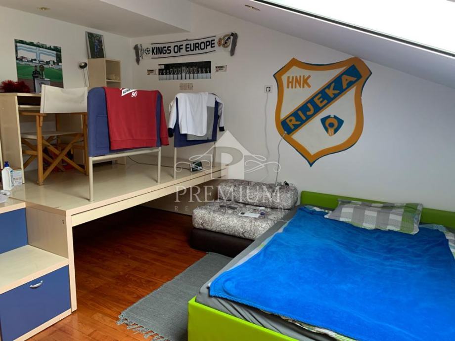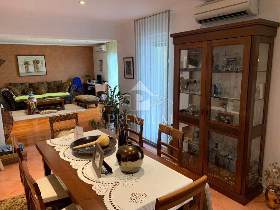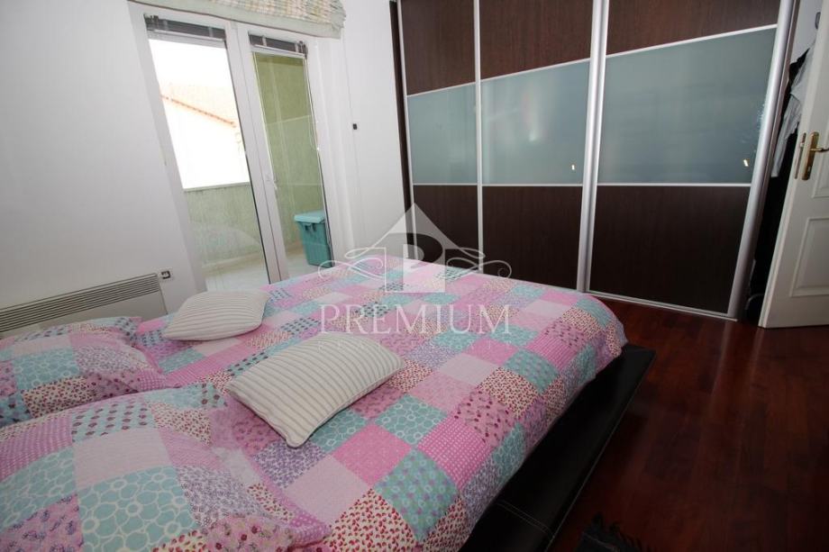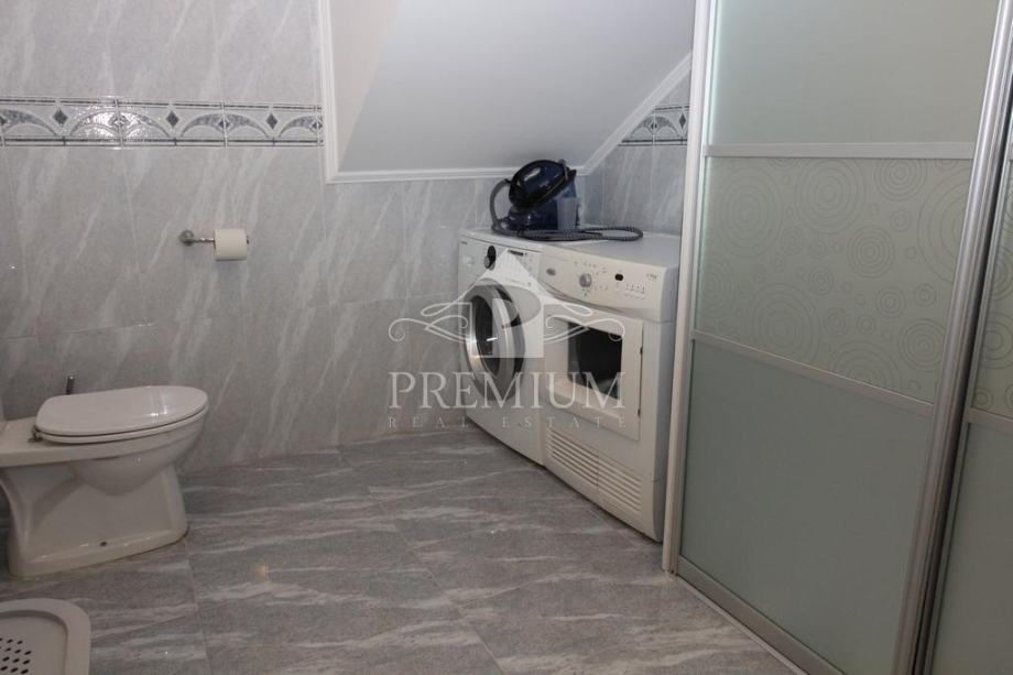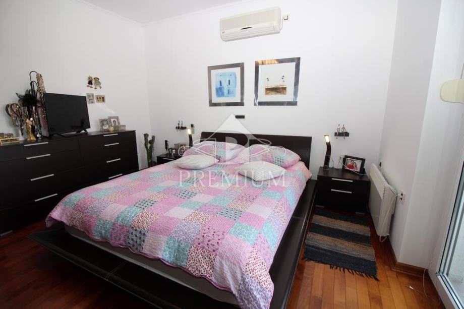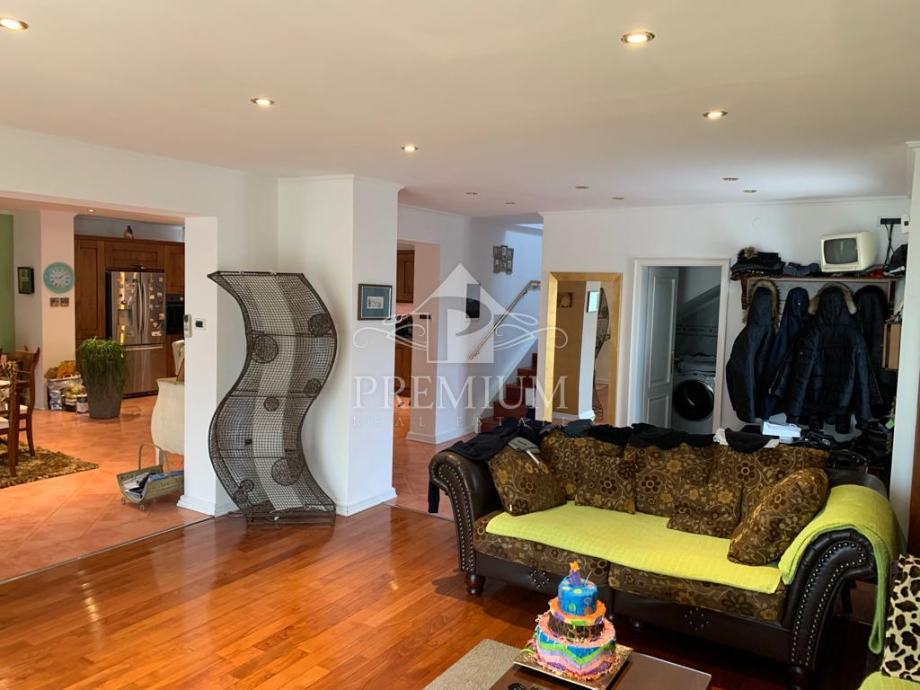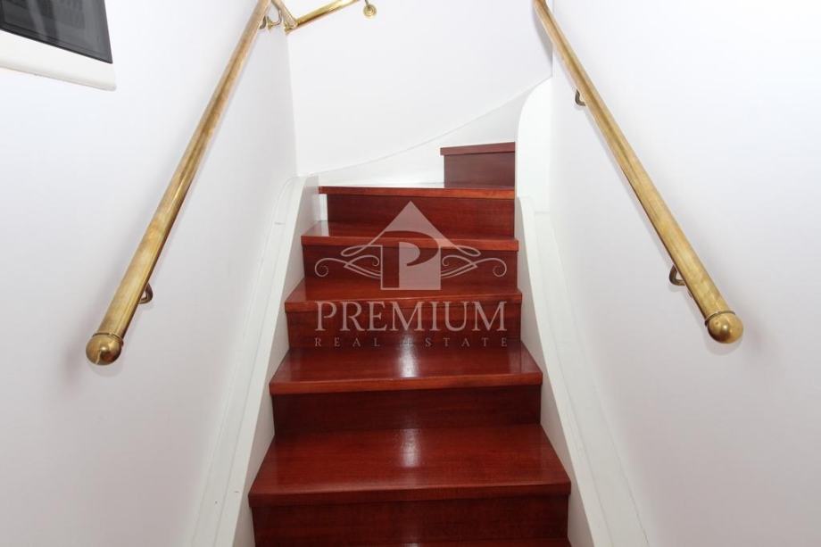 U ponudi imamo vrlo moderno opremljen dvoetažni četverosobni stan koji je smješten u maloj stambenoj zgradi na mirnoj i tihoj lokaciji. U vlasničkom listu površina stana iznosi 296,39 m2 a prema obračunu koeficijenta iznosi 235 m2. Donja etaža se sastoji od hodnika, prostranog dnevnog boravaka, blagovaone i kuhinje te dvije spavaće sobe, dvije velike kupaone, lođe i terase. Unutarnjim stubištem dolazi se na gornju etažu koja se sastoji od galerije te dvije spavaće (dječije) sobe i velike kupaone. Niži dio potkrovlja je iskorišten za velika spremišta.