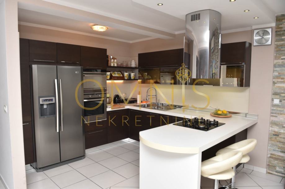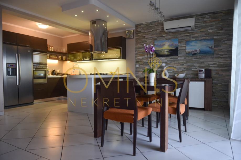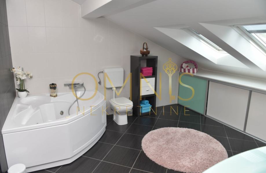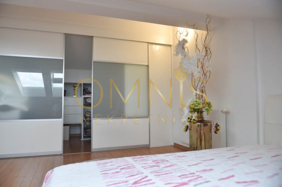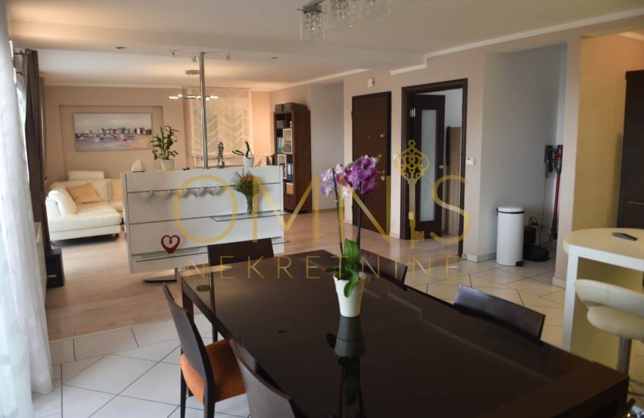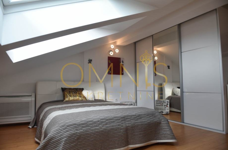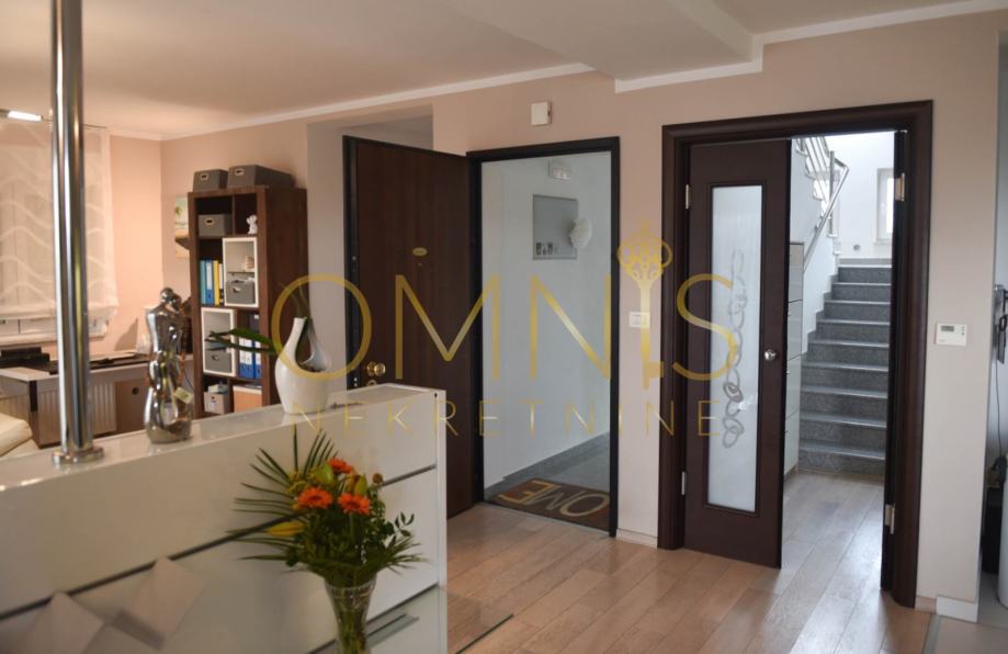 Prodaje se prostran i luksuzno namješten dvoetažni stan netto površine 186 m2, smješten na 2. katu i potkrovlju stambene zgrade.