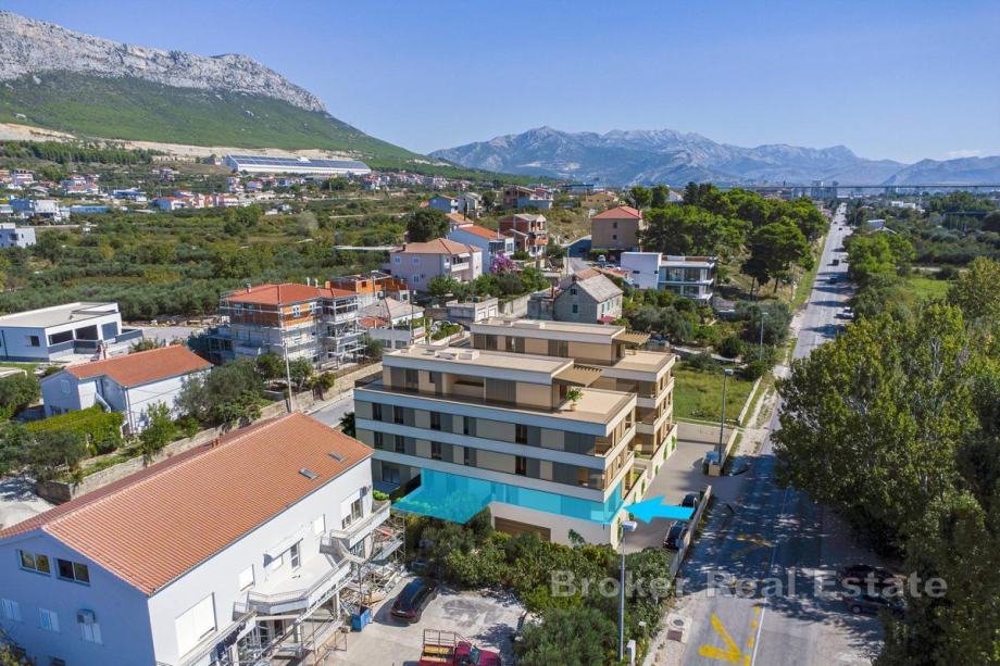 Zgrada se odlikuje elegantnom arhitekturom i pažljivo biranim materijalima, a svaki detalj osmišljen je s ciljem osiguravanja maksimalne udobnosti. Visoka razina privatnosti, neposredna blizina mora, grada Solina, Splita, te suvremeni standardi gradnje čine ovaj stan izuzetnom prilikom na tržištu.