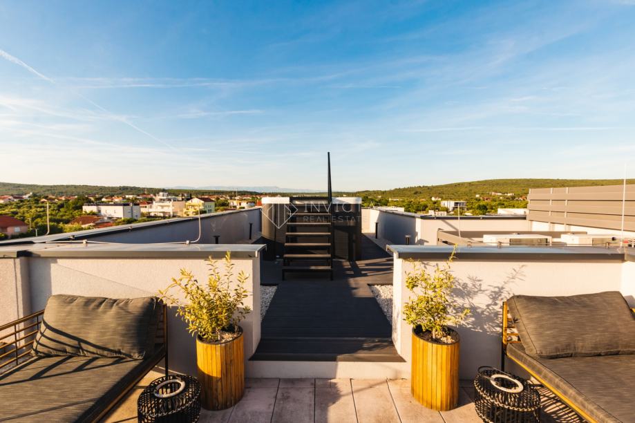 Penthouse s krovnom terasom i jacuzzijem – 50 m od plaže, Sukošan