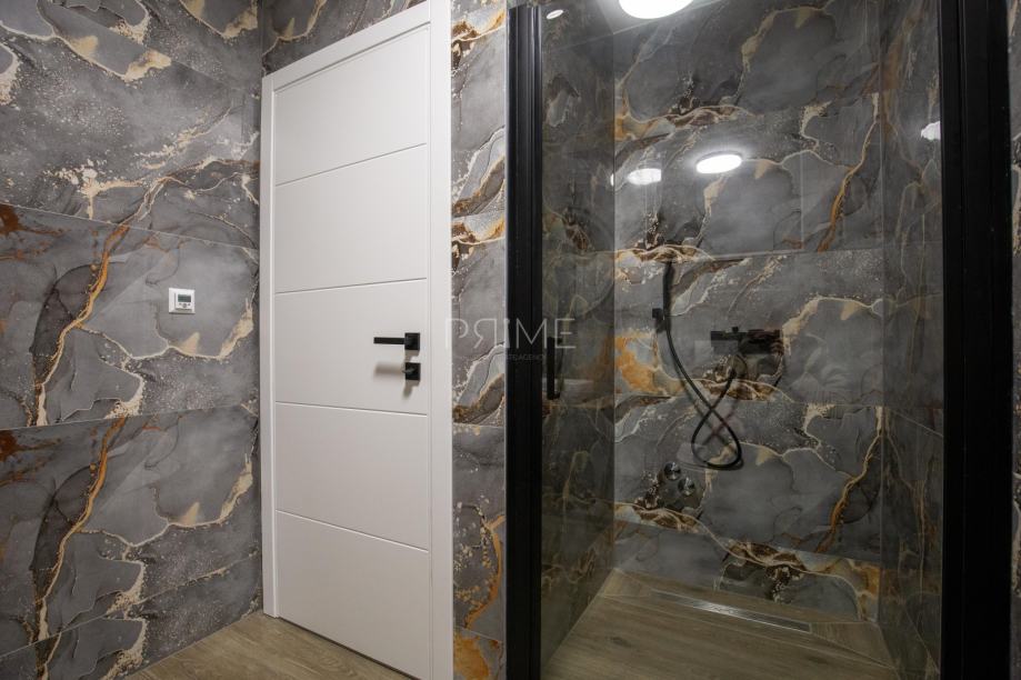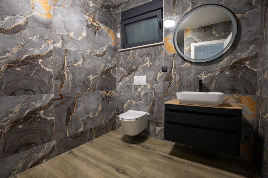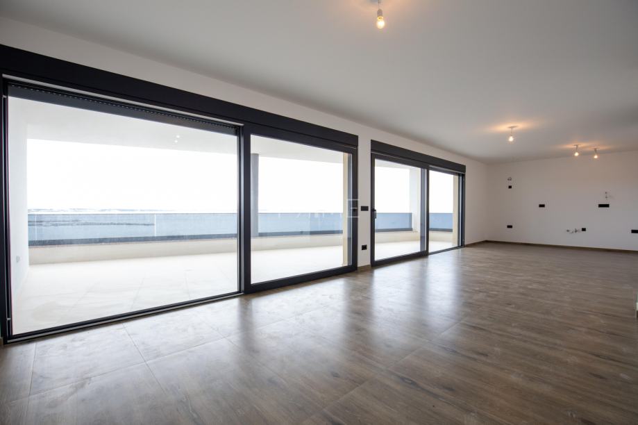 Penthouse površine 176,05 m2 sastoji se od kuhinje, blagovaone, dnevnog boravka, wc-a, četiri spavaće sobe, četiri kupaonice (tri sobe imaju vlastite kupaonice) i natkrivene terase. Stanu pripadaju dva vanjska parkirna mjesta i spremište u prizemlju zgrade. Doslovno iz cijelog stana se pruža prekrasan pogled na more. Tlocrtna površina stana je 215 m2. Nalazi se u manjoj stambenoj zgradi koja se sastoji od 4 stambene jedinice.