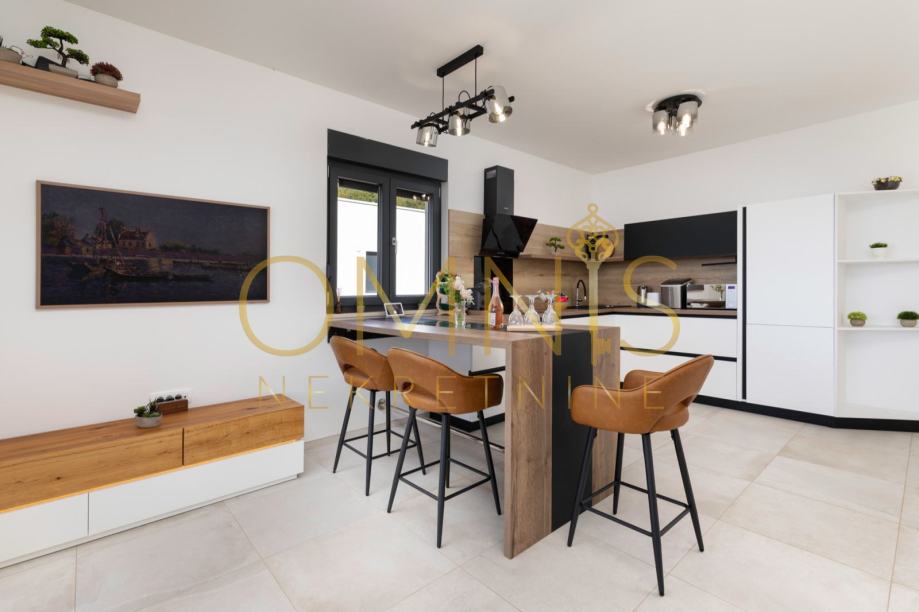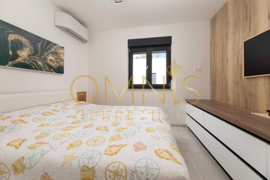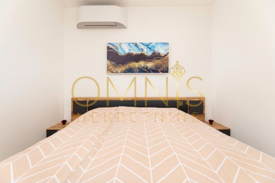 Stan se sastoji od dvije udobne spavaće sobe, prostranog dnevnog boravka i moderno opremljene kuhinje. Raspored prostora osmišljen je tako da pruža maksimalnu funkcionalnost i ugodan boravak. Jugozapadna orijentacija osigurava obilje prirodnog svjetla tijekom cijelog dana te stvara topao i vedar ambijent.