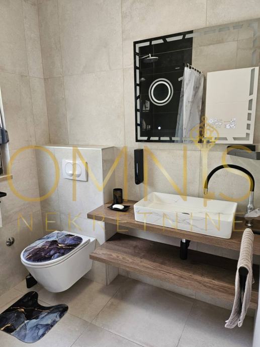 Predstavljamo vam luksuzan i prostran stan smješten na prvom katu kvalitetne zgrade u prestižnom dijelu Omišlja, svega nekoliko koraka od mora. Nekretnina se prostire na 110 m2 te spaja vrhunsku udobnost, funkcionalnost i atraktivnu lokaciju – savršenu za miran obiteljski život ili kao investiciju u turističke svrhe.