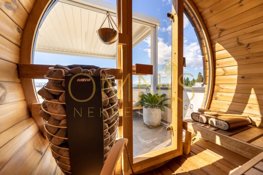 Stan dolazi potpuno opremljen – kuhinja s aparatima, perilica posuđa, perilica rublja, TV, krevet, radni stol – što omogućuje trenutačno useljenje bez dodatnih ulaganja. Sustav grijanja i hlađenja riješen je putem električne energije i klima uređaja, dok dodatni luksuz čine jacuzzi i sauna.