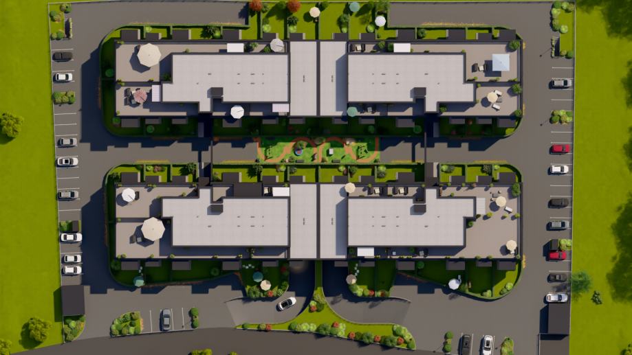 Projekt se sastoji od 2 stambene zgrade po 79 stanova, ukupno 158 stanova, zatvorenog tipa naselja. U projekt je također uključeno ukupno 160 garažnih parkirnih mjesta, 50 vanjskih nenatkrivenih parkirnih mjesta, 160 spremišta u podrumu, te dječje igralište koje je na raspolaganju svim stanarima. Svakom stanu pripada 1 garažno parkirno mjesto i spremište u podrumu, te postoji mogućnost kupnje dodatnog parkirnog mjesta i spremišta.