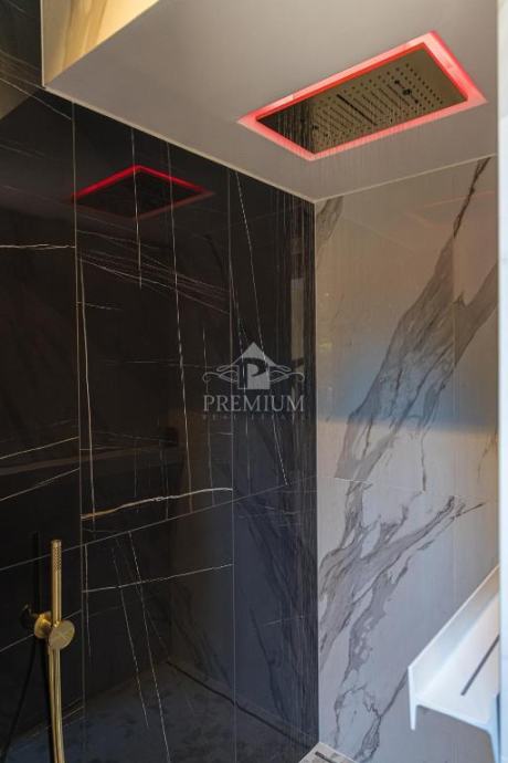 Na izvrsnoj lokaciji u samom centru grada Opatije, nudimo ovaj ekskluzivni stan u vili sa samo dvije stambene jedinice kategorizirane sa 5 zvjezdica. Stan ima 100 m2 stambene površine i sastoji se od prostranog dnevnog boravka, kuhinje s blagovaonom, jednom spavaćom sobom sa garderobom i jednom kupaonom. Sve prostorije su izuzetno prostrane te luksuzno namještene i opremljene svim potrebnim aparatima i opremom. Iz stana se izlazi na veliku terasu i dvorište u kojem se nalaze hidromasažna kada, sunčalište i roštilj koji su na zajedničko korištenje. U okućnici se nalazi natkriveno parkiralište za više vozila. Vila se nalazi na nekoliko minuta hoda do mora, šetališta, tržnice i svih potrebnih sadržaja za svakodnevni život. Vila je trenutno u funkciji iznajmljivanja (5 *****). U cijeni najma NISU uključene režije.