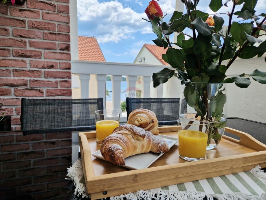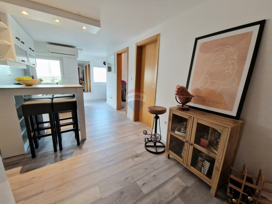 Prodaje se stan ukupne veličine 75m2 uz samu plažu na Srimi, u kompleksu zgrada u prvom redu do mora. Stan se sastoji od dvije etaže. Na prvoj etaži stana nalazi se kuhinja s blagovaonicom, dnevni boravak, spavaća soba, kupaonica s toaletom te prostrana terasa s koje se pruža prekrasan pogled na more.
