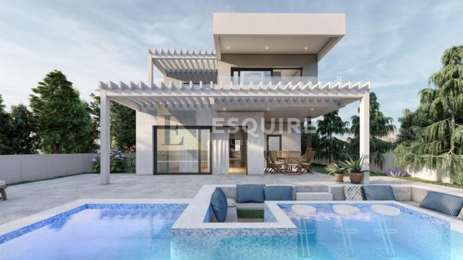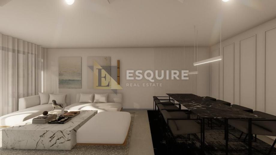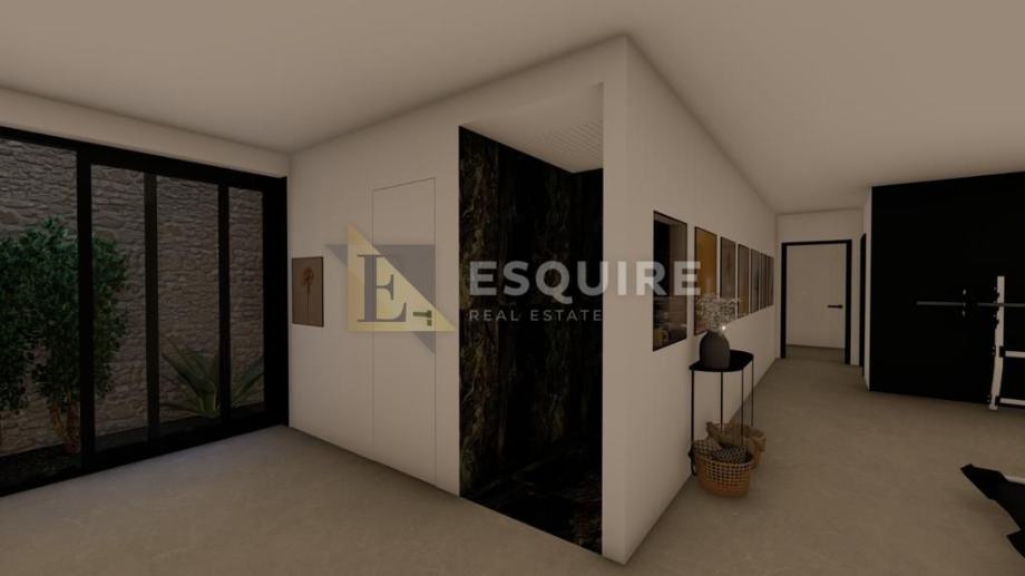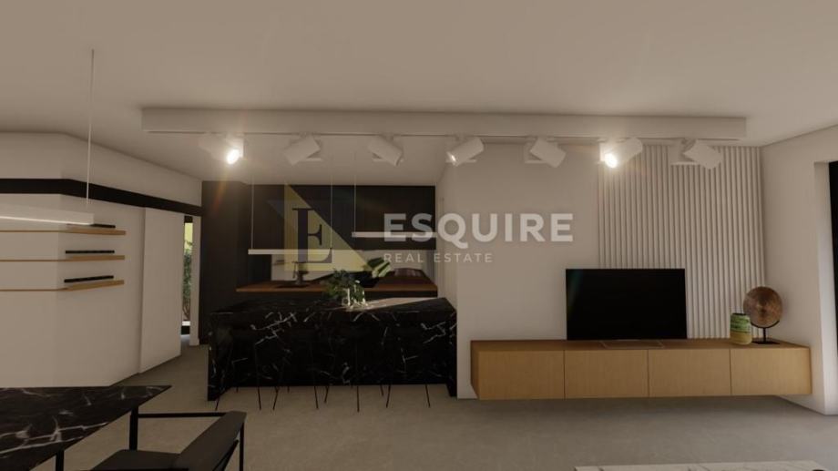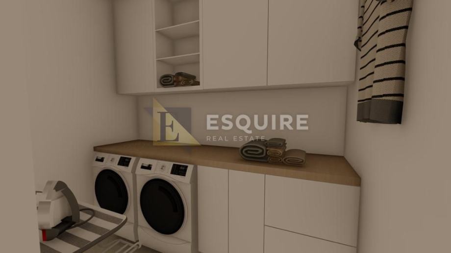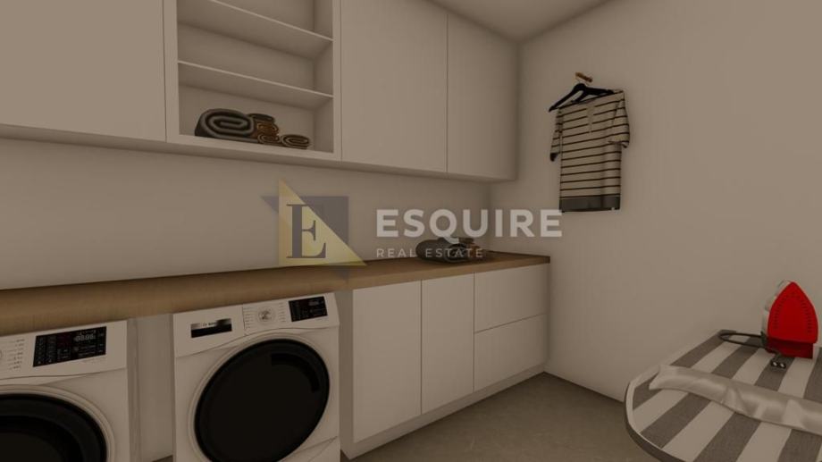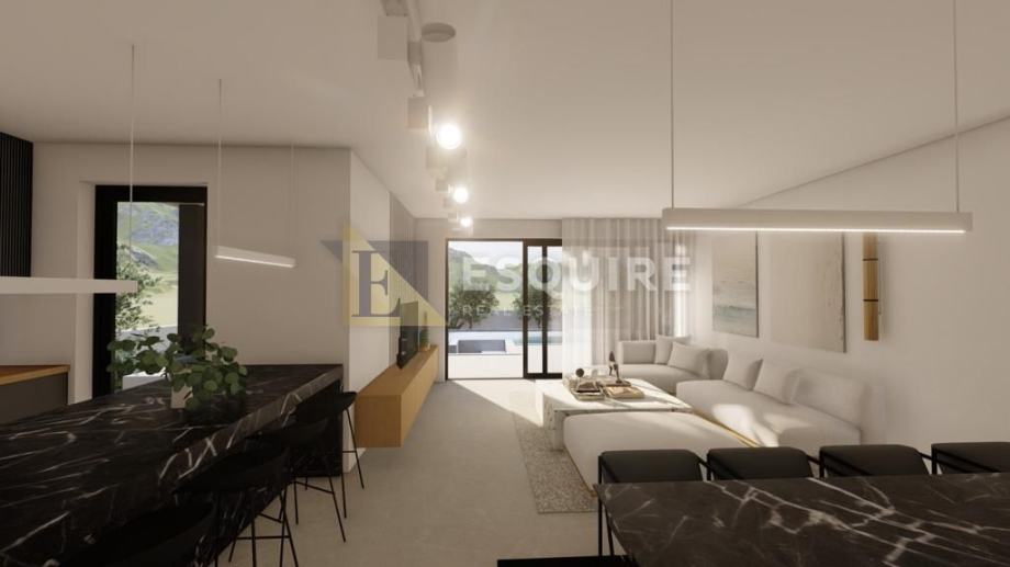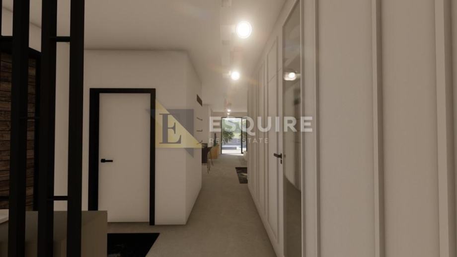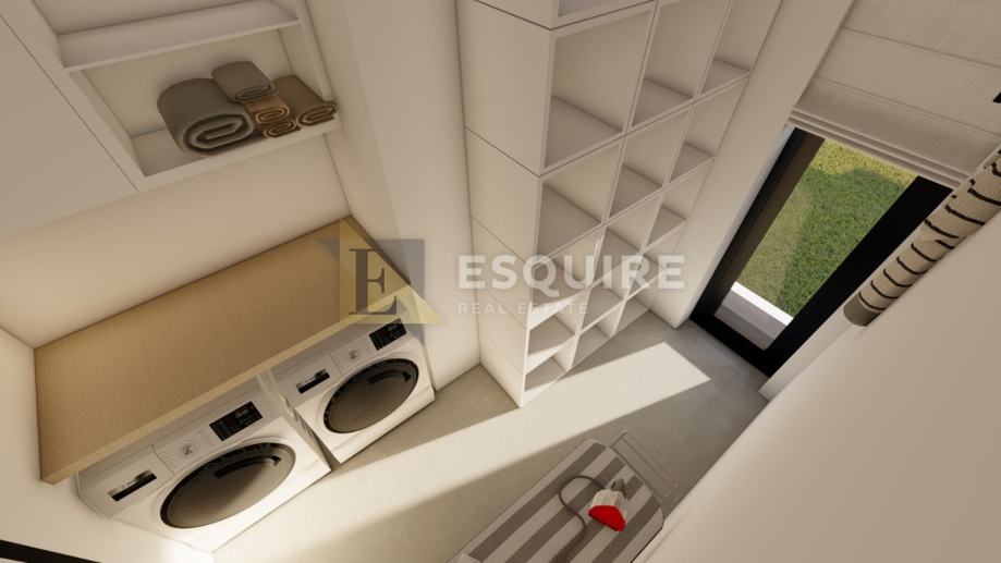 Ovaj prostrani trosoban stan ukupne površine 206,12 m2 proteže se preko podruma i prizemlja. Sastoji se od prostranog otvorenog koncepta dnevnog boravka s blagovaonicom i moderno opremljenom kuhinjom koja vodi na natkrivenu terasu i veliku okućnicu površine 200 m2 s privatnim bazenom površine 35 m2. Stan također obuhvaća tri prostrane spavaće sobe, svaka sa svojom privatnom kupaonicom, toaletom zasebno te velikim hodnikom i predsobljem. Dva parkirna mjesta osigurana su za stanare. Cijena uključuje kompletan namještaj prikazan na vizualizaciji! Očekivani energetski razred je A+.