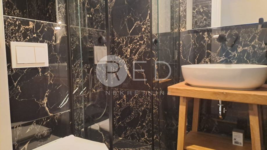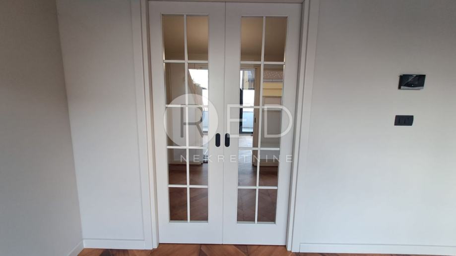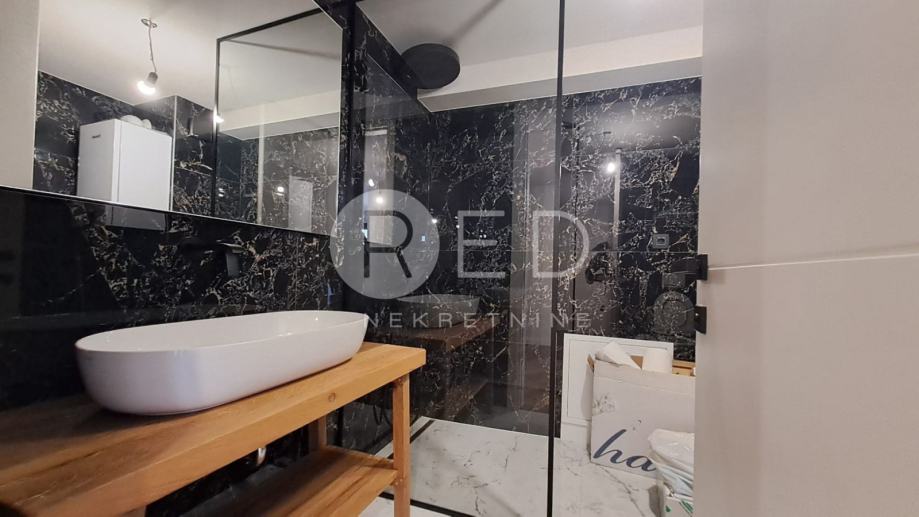 Stan je građen po najvišim standardima: plinsko etažno podno grijanje osigurava optimalnu temperaturu, a furnirana unutarnja stolarija usklađena je s bojama interijera. Podovi su obloženi prvoklasnim parketom od hrasta i oraha, dok su kupaonice opremljene vrhunskom keramikom te sanitarijama Hansgrohe i Grohe. Sigurnost je zajamčena protuprovalnim vratima.