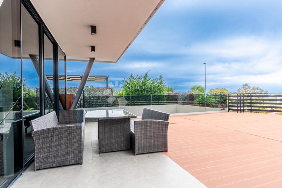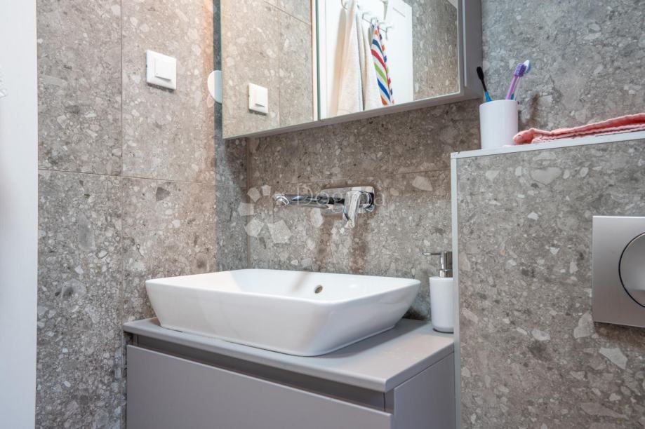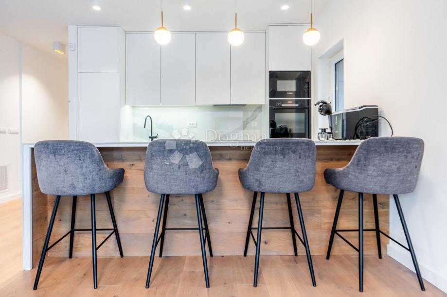 Stan je potpuno opremljen vrhunskim, modernim namještajem i iznimno kvalitetnim materijalima. Podno grijanje, klima uređaji u svakoj prostoriji, alarmni i video nadzor te protuprovalna vrata jamče udobnost i sigurnost tijekom cijele godine.