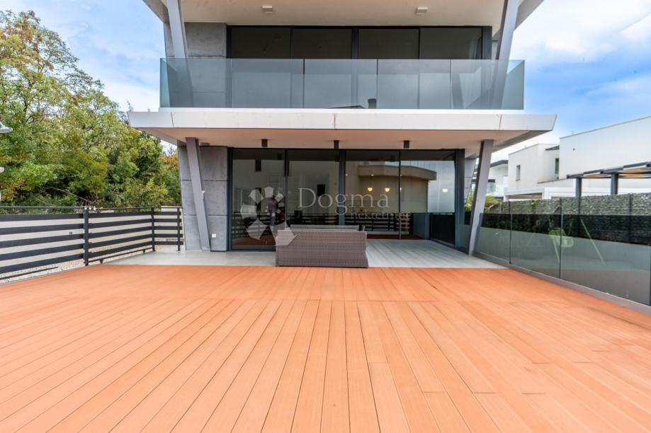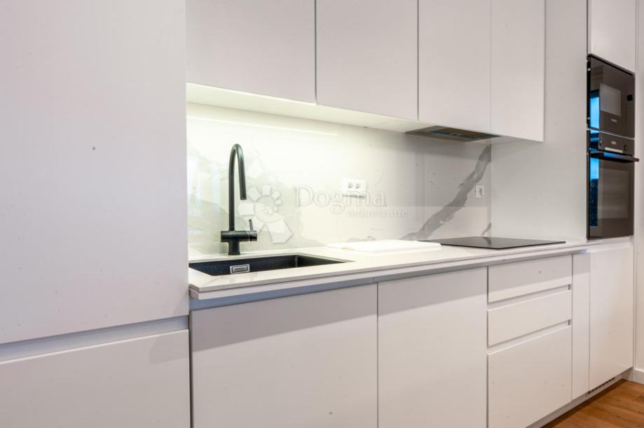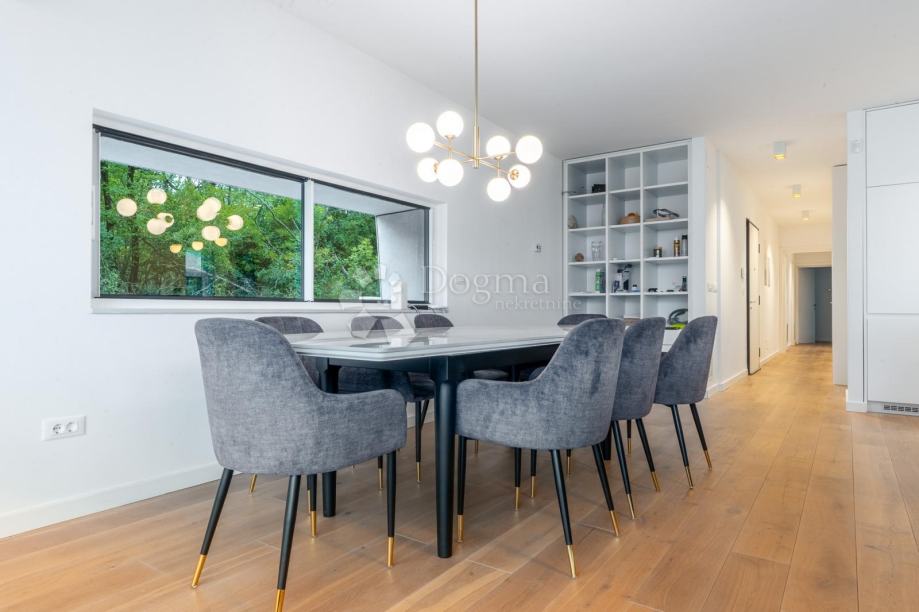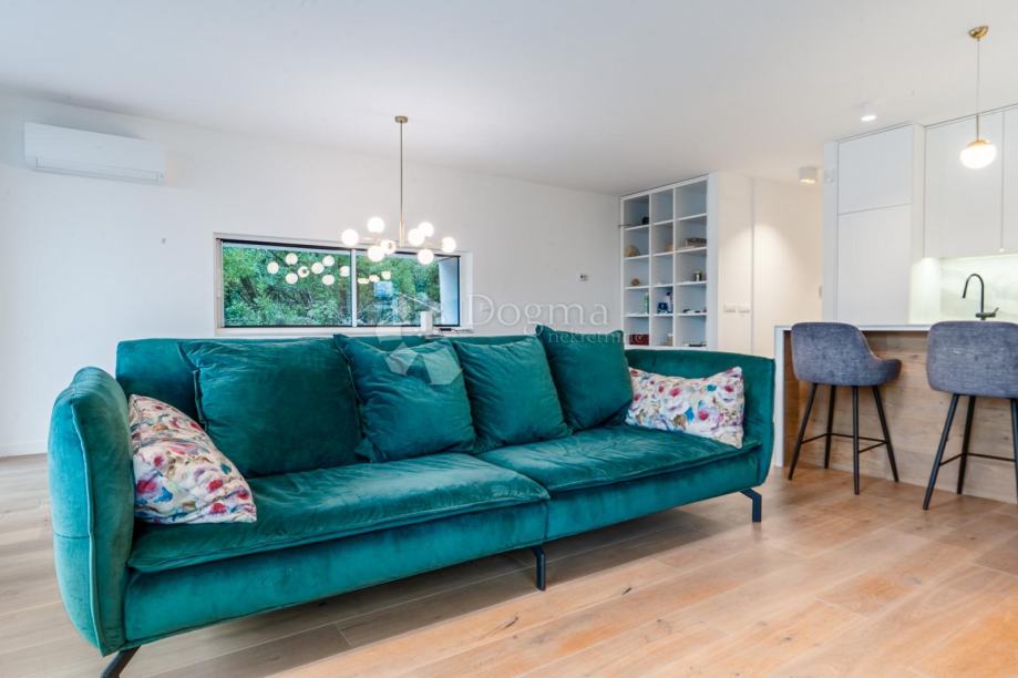 Stan je potpuno opremljen vrhunskim, modernim namještajem i iznimno kvalitetnim materijalima. Podno grijanje, klima uređaji u svakoj prostoriji, alarmni i video nadzor te protuprovalna vrata jamče udobnost i sigurnost tijekom cijele godine. Prodaje se potpuno namješten i opremljen, tako da je odmah spreman za useljenje i život.