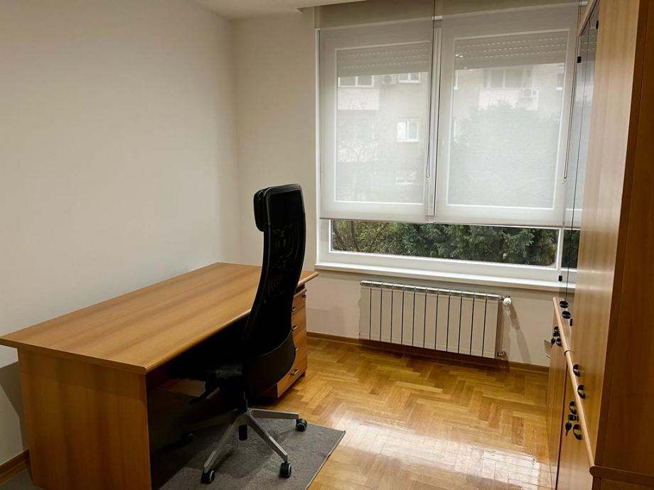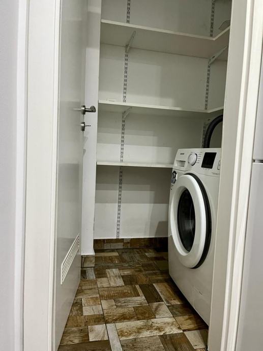 Stan se sastoji od: spavace sobe s ugradbenim ormarima s kliznim staklenim vratima, radne sobe (koja se po potrebi moze prenamjeniti u spavacu sobu), kupaonice s vrhunskim Grohe sanitarijama, dnevni boravak s koznim trosjedom na razvlacenje, kuhinja s Bosh aparatima (perilica sudja, hladnjak, stednjak, pecnica ), ostava s perilicom rublja, dodatni wc s umivaonikom, balkon,hodnik s ugradbenim ormarom, ulazni hodnik s velikim ogledalom...