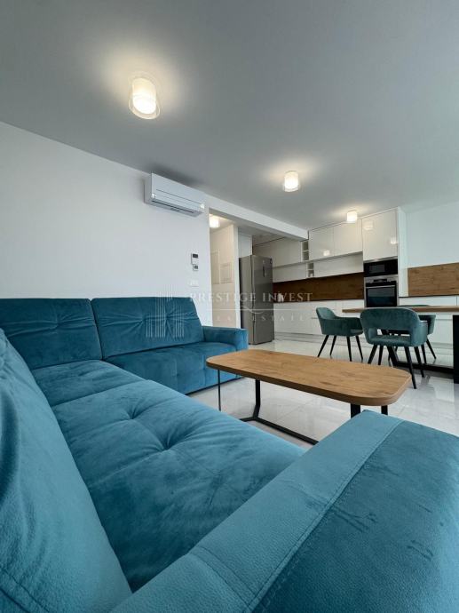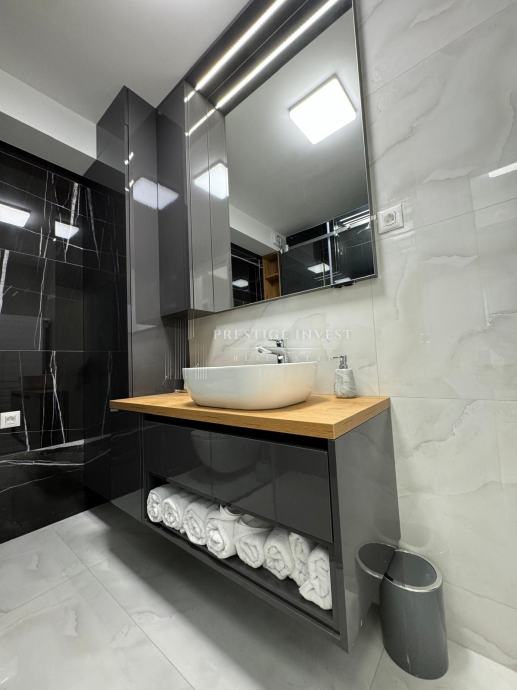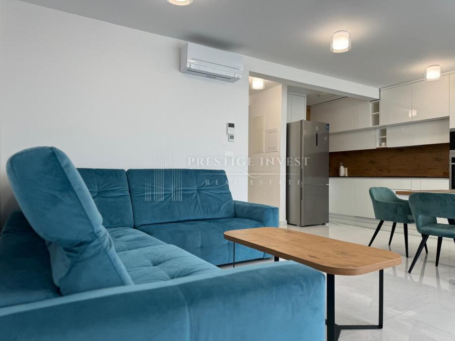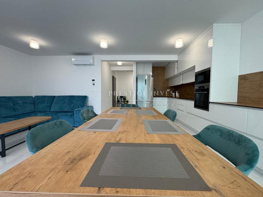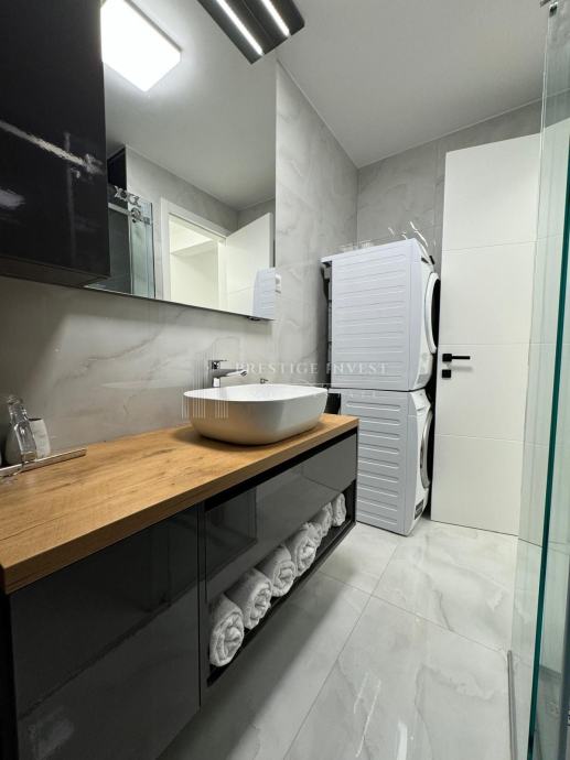 Stan je opremljen modernim namještajem po mjeri i opremom koji su uključeni u cijenu stana