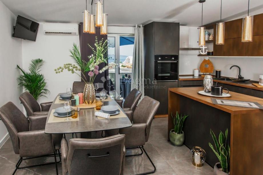 Panoramski pogled na more s gornjih etaža, prostrane lođe i terasa savršene za druženje i mogućom ugradnjom jacuzzi kade, te dvorište od 306 m² s potencijalom za bazen ili dodatnu gradnju, čine ovu nekretninu istinskom raritetom na tržištu.