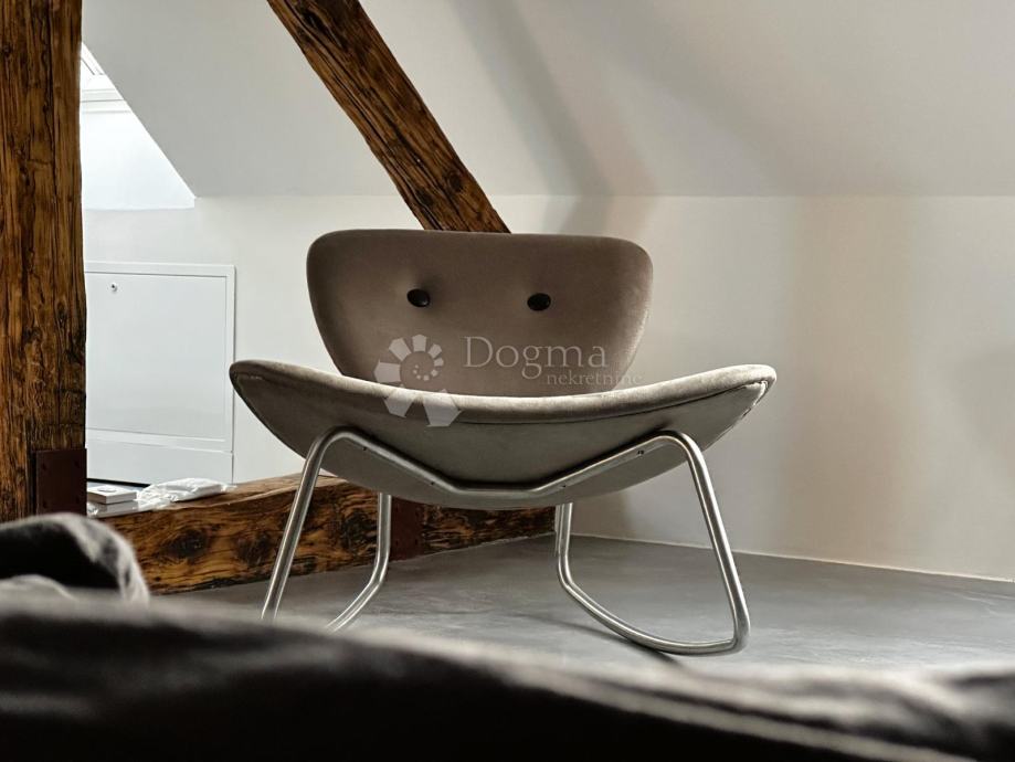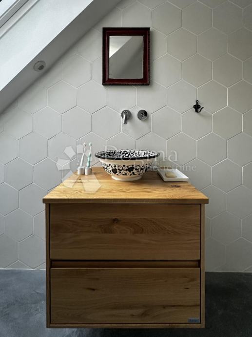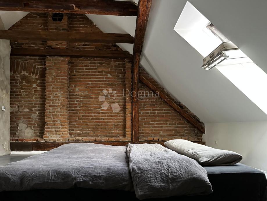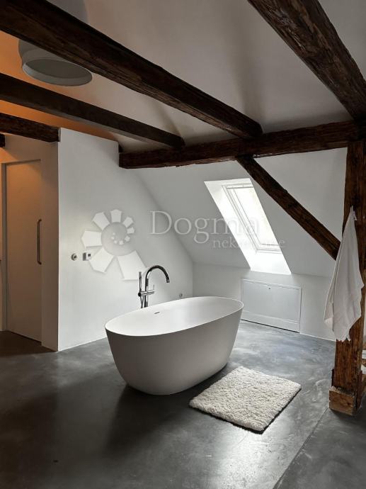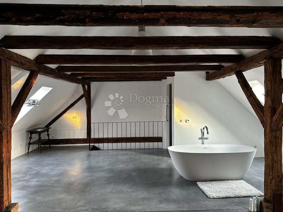 Potkrovlje, veličine 67 m², obuhvaća prostranu otvorenu spavaću sobu i kupaonicu, s mogućnošću pregradnje u manje sobe. Sve instalacije su također nove, a podovi obloženi microcementom. Kupaonica je opremljena Grohe sanitarijama i Neoro kadom, dok su keramičke pločice i umivaonik ručno izrađeni i uvezeni iz Maroka. Potkrovlje je dodatno osvijetljeno Velux prozorima na daljinsko upravljanje, dok je krovište potpuno novo i izolirano. Stari drveni pod zamijenjen je armiranim betonom i estrihom, a konstrukcija je dodatno ojačana čeličnim nosačima.