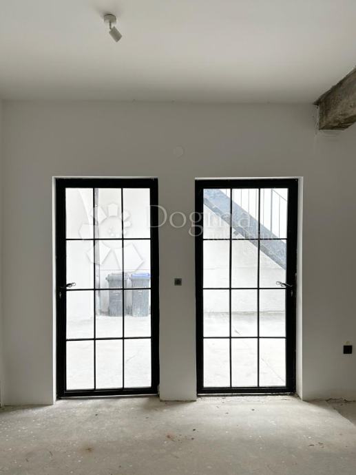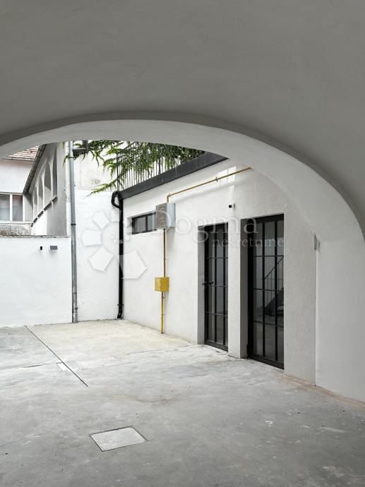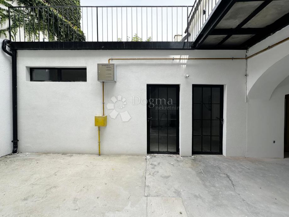 U prizemlju se nalaze dva poslovna prostora, ukupne površine 70 m², uređena u visokom roh bau standardu s namjenom ugostiteljskog prostora, s mogućnošću prenamjene u ured ili stambeni prostor. Sve prostorije, uključujući haustor, opremljene su podnim grijanjem, dok su instalacije za struju, vodu i odvode potpuno nove. Ugrađena je i nova hidroizolacija, a završna podna obloga čeka na izbor novih vlasnika, s opcijom postavljanja hrastovog parketa prve klase koji je već dostupan. Prostor je dodatno obogaćen novim hrastovim vratima i prozorima rađenim po mjeri, dok su ulazna vrata obrađena pjeskarenjem i zaštićena specijalnim slojem lazure. Rasvjeta je osigurana Philips Hue sustavom, a sigurnost jamče Yale pametne brave i sigurnosne kamere.