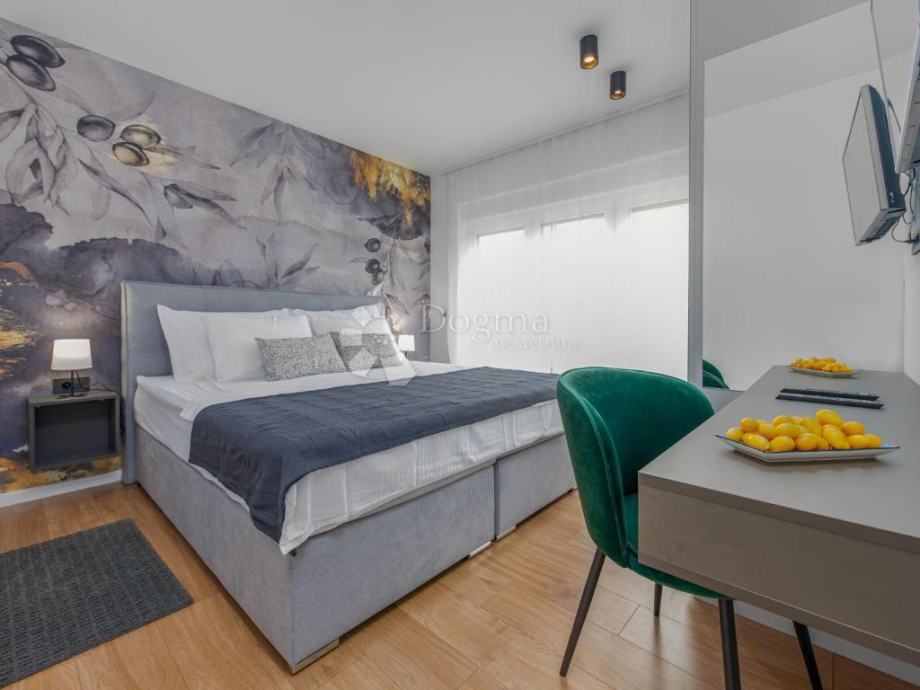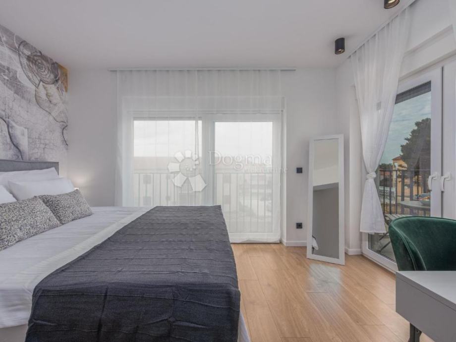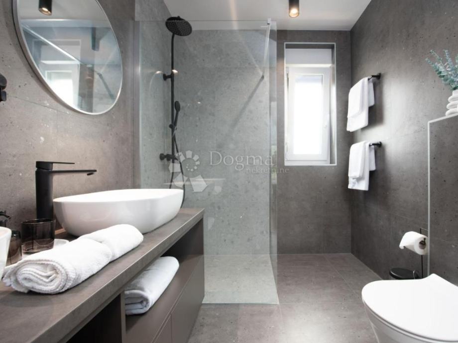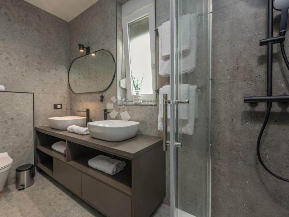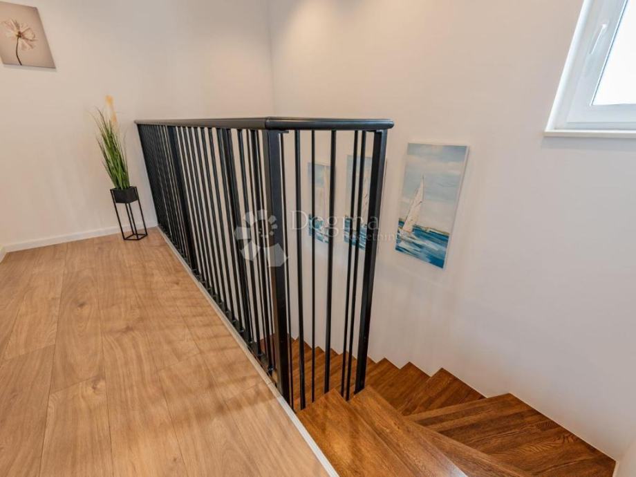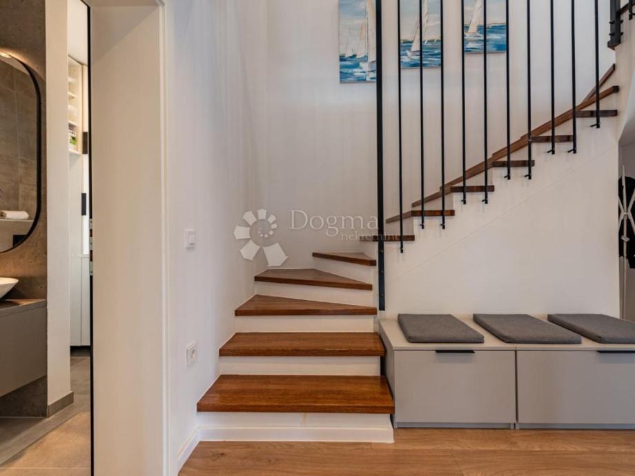 Na katu su tri klimatizirane spavaće sobe, svaka s vlastitom modernom kupaonicom. Sa etaže se prostire prekrasan pogled na more.