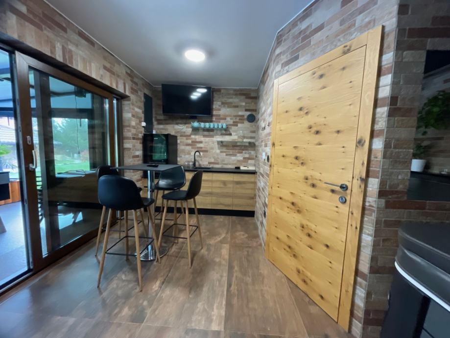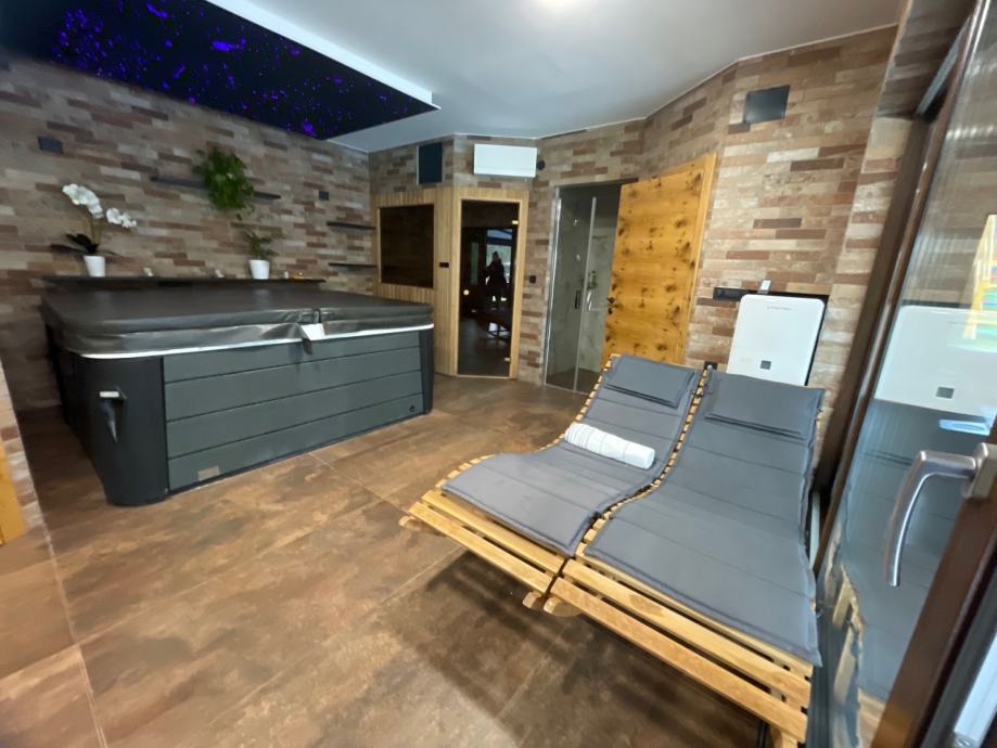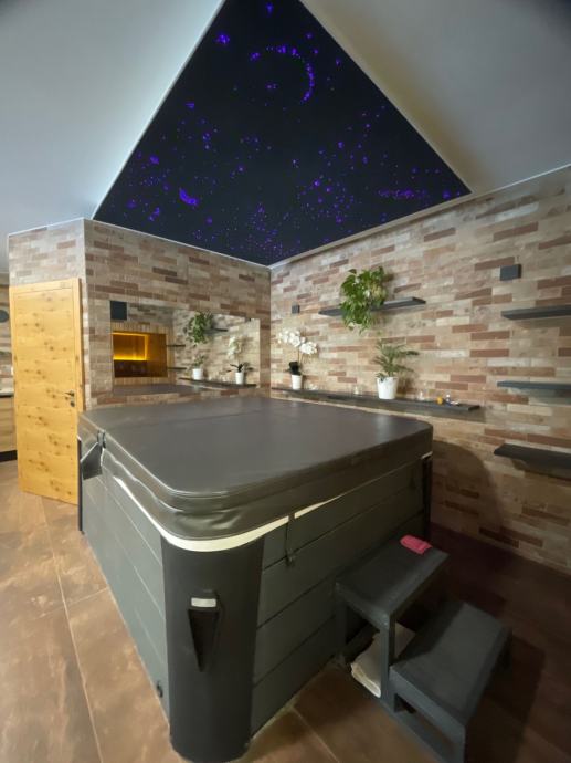 Na imanju nalazi se i bazen sa sunčalištem, terasa sa roštiljem te u nastavku wellnes prostor (sve podno grijanje) gdje se nalazi još dodatan prostor za opuštanje sa spavaćom sobom, jacuzzijem, kupaonicom, te finskom saunom.