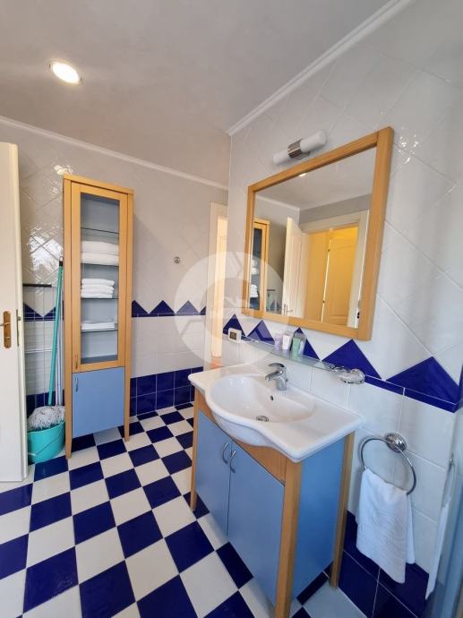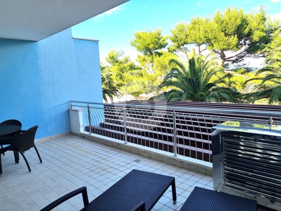 Prekrasan stan nalazi se samo 130 m od mora, u uređenom dijelu naselja. Zgrada je sagrađena 2005. godine i redovno se održava. Smješten je u visokom prizemlju zgrade sa liftom. Sastoji se od: spremišta u suterenu zgrade površine 7,23 m2, te