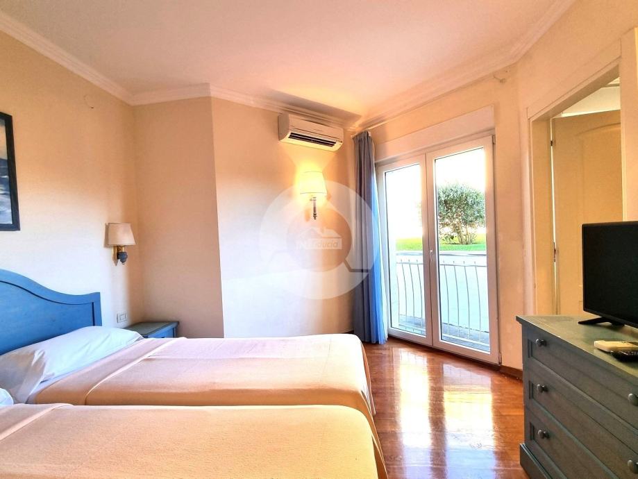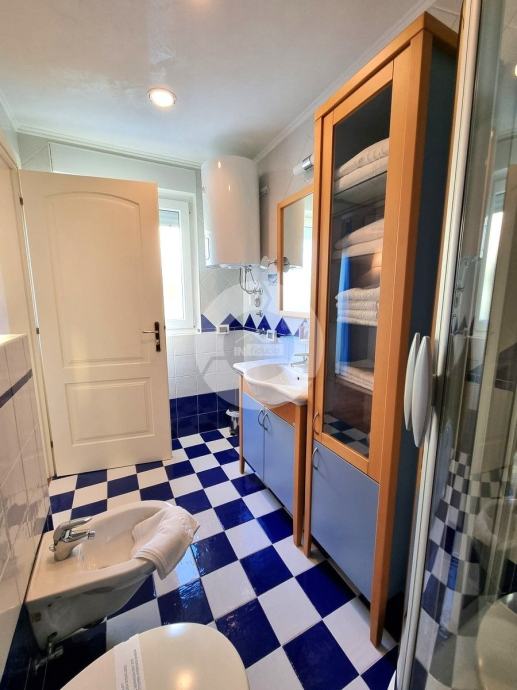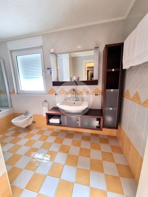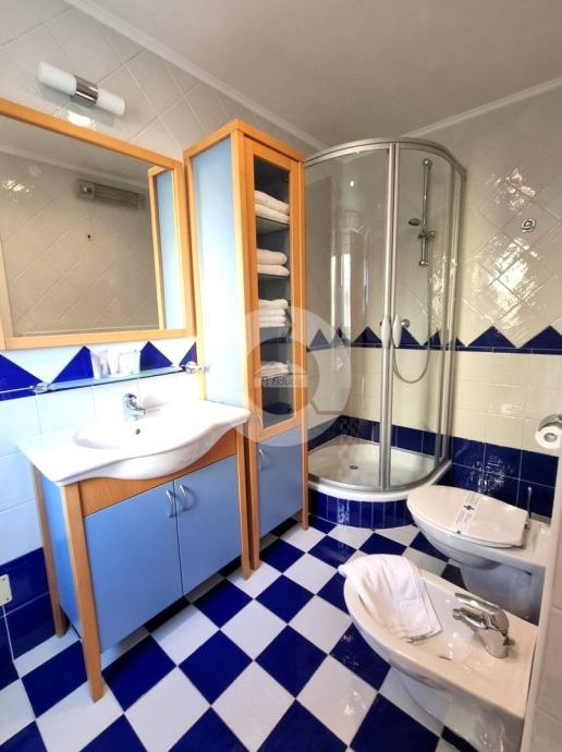Prekrasan stan nalazi se samo 130 m od mora, u uređenom dijelu naselja. Zgrada je sagrađena 2005. godine i redovno se održava. Smješten je u visokom prizemlju zgrade sa liftom. Sastoji se od: spremišta u suterenu 5,15 m2, stan u prizemlju koji se sastoji od: hodnika 8,43 m2, kupatila 7,45 m2, spavaće sobe 10,78 m2, spavaće sobe 18,44 m2, kupatila 5,15 m2, dnevnog boravka i kuhinje 35,51 m2, natkrivene terase 25,06 m2, ukupno 115,97 m2. Moguće je otkupiti parkirno mjesto za dodatnih 14.000 eur ili garažno mjesto za dodatnih 20.000 eur. Stan se prodaje kompletno namješten kao na fotografijama. Grijanje/hlađenje je regulirano putem klima uređaja. Vlasnicima stanova se nudi mogućnosti korištenja bazena, fitnesa, te uz određene popuste unutarnjeg bazena, golfa i slično. Obzirom na samu lokaciju i sadržaj, idealan je izbor kao investicija za turistički najam ali i za cijelogodišnji/povremeni boravak u istarskom Raju.