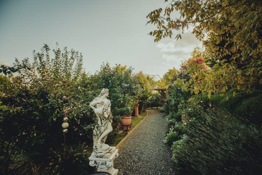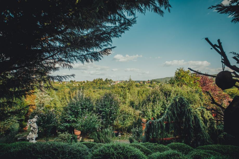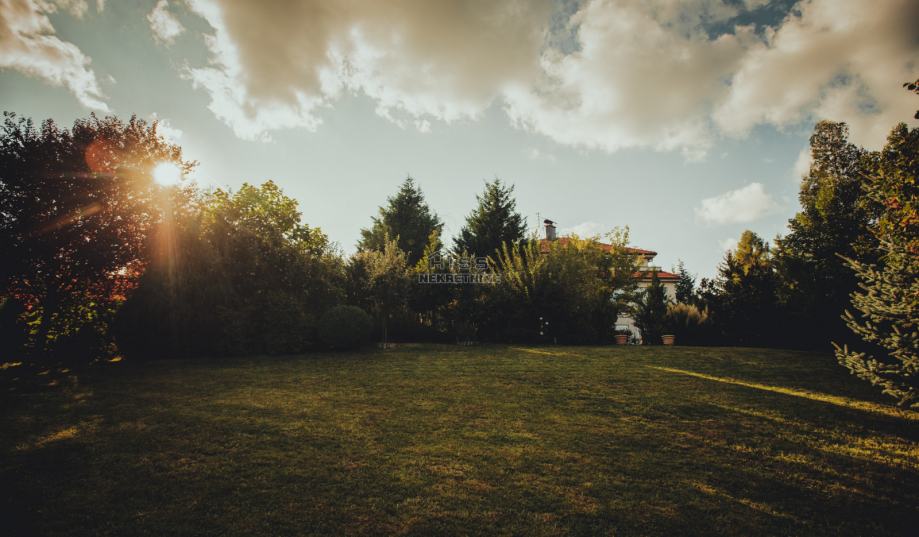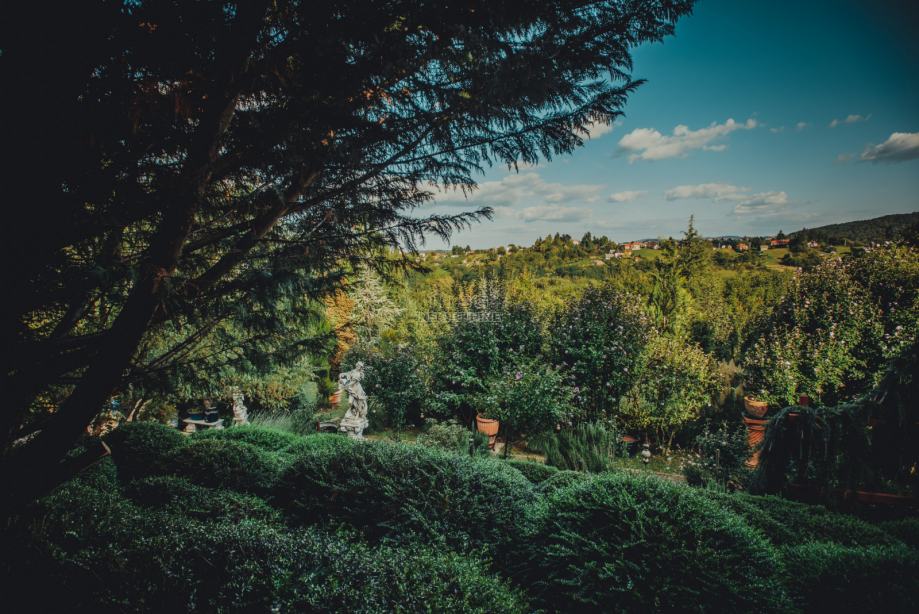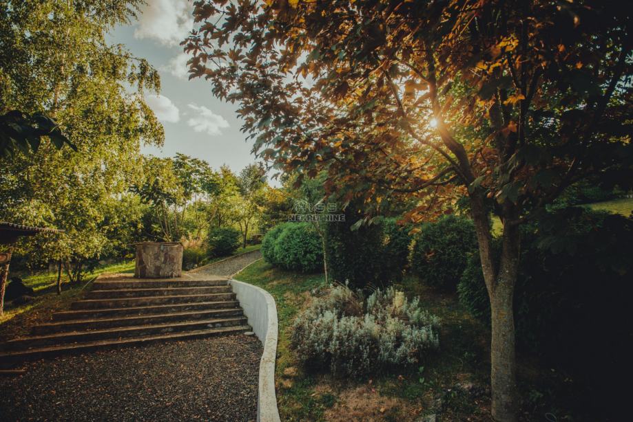 Ekskluzivna luksuzna kuća-vila razvedenog tlocrta od ukupno 320 m2, na zemljištu ukupne površine 24.500 m2, u prekrasnom mirnom pitoresknom predjelu kontinentalne brežuljkaste Hrvatske.Odlično je orijentirana, tako da sunčeve zrake dopiru duboko u prostorije, kompletno opremljena i uređena. Izuzetno kvalitetna gradnja. Odličan i moderan raspored prostorija – arhitektonski oblikovana u svrhu što bolje iskoristivosti. Termo fasada, kvalitetna pvc/alu stolarija s troslojnim staklima i električno upravljanim roletama, klima uređaji u prizemlju i katu, centralno grijanje na plin, podno grijanje u prizemlju i kupaonicama na katu, kamin na drva, video nadzor. U sobama parket, a u ostalim prostorijama vrhunska keramika. Kuća je lijepog i modernog rasporeda prostorija s puno unikatnih detalja i odlično održavana. U kući se nalazi u suterenu zasebni apartman. Hortikulturno prekrasno uređena okućnica – arboretum. U nastavku zemljište s voćnjakom, vrtom, šumom. Na dvorištu tlakavci, parcela ograđena, dvorišta ograda na daljinsko otvaranje kao i garažna vrata. Garaža za dva parkirna mjesta. Mogućnost gradnje bazena. Pogodno za stanovanje, ali i za turizam tj. iznajmljivanje. Vlasništvo uredno bez tereta. Udaljeno od Varaždina – 7 km, 2 km od autoceste i 5 km od Varaždinskih Toplica. Trgovine, škola, vrtić, liječnik, ljekarna, pošta ... u krugu od 1 km.