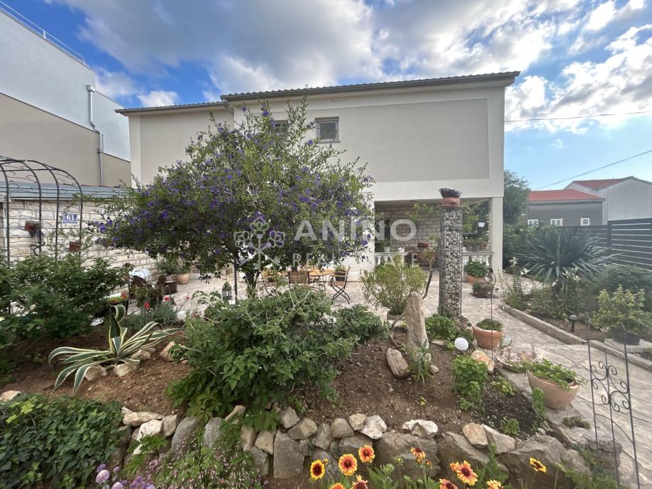 U mirnom dijelu Sukošana, svega 100 metara od mora, smještena je ova izuzetna obiteljska kuća s uređenom okućnicom, idealna za miran obiteljski život ili turističku djelatnost.