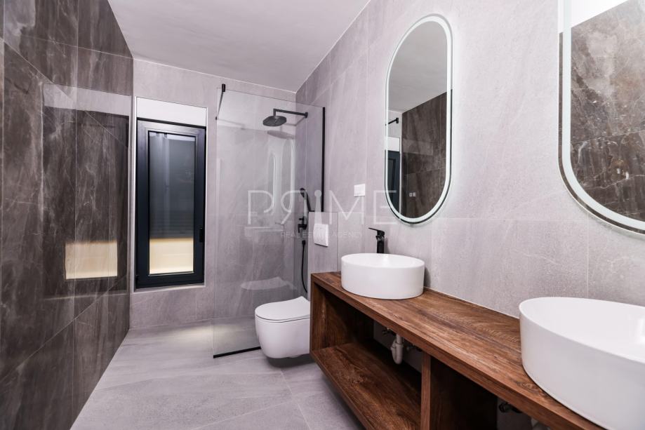 Zgrada se ističe suvremenim dizajnom, vrhunskom kvalitetom gradnje te pogledom na more koji se pruža s prvog i drugog kata.
