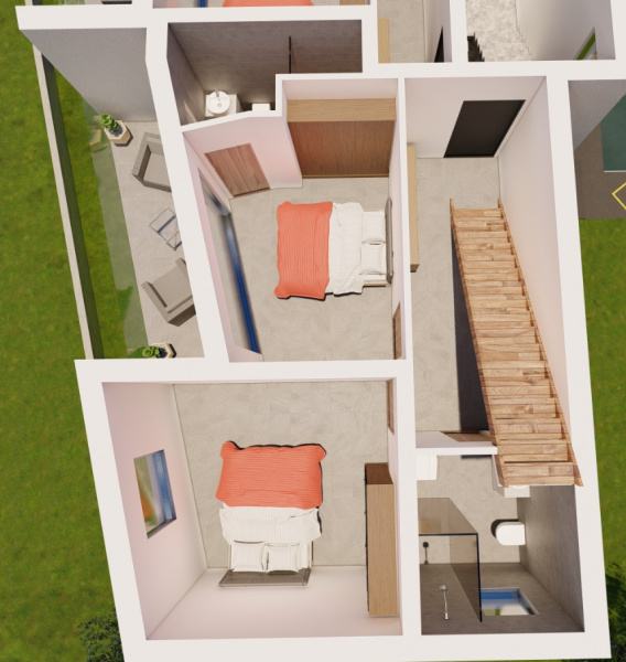 IKA, OPRIĆ U ponudi je stan u ekskluzivnoj novogradnji, planirani rok krajem 2022. Stan se nalazi na 1.katu i 2. katu stambene zgrade, a sastoji se od sobe, sobe sa kupaonicom, kupaonice, hodnika i terase na 1. katu i kuhinje i dnevnog boravka, wc-a, stubišta i terase na 2.katu.