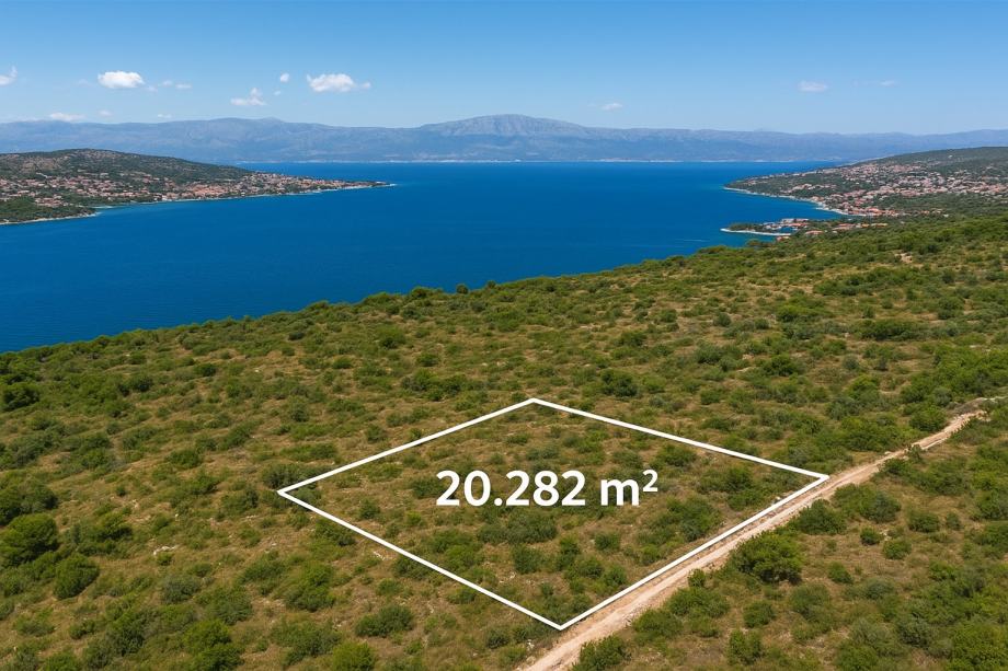 Predstavljamo izuzetnu investicijsku priliku u jednoj od najatraktivnijih lokacija na Jadranu – Žedno, otok Čiovo. Parcela ukupne površine 20.282 m² smještena je na sjevernoj padini, s otvorenim pogledom na more, otok i povijesni grad Trogir.