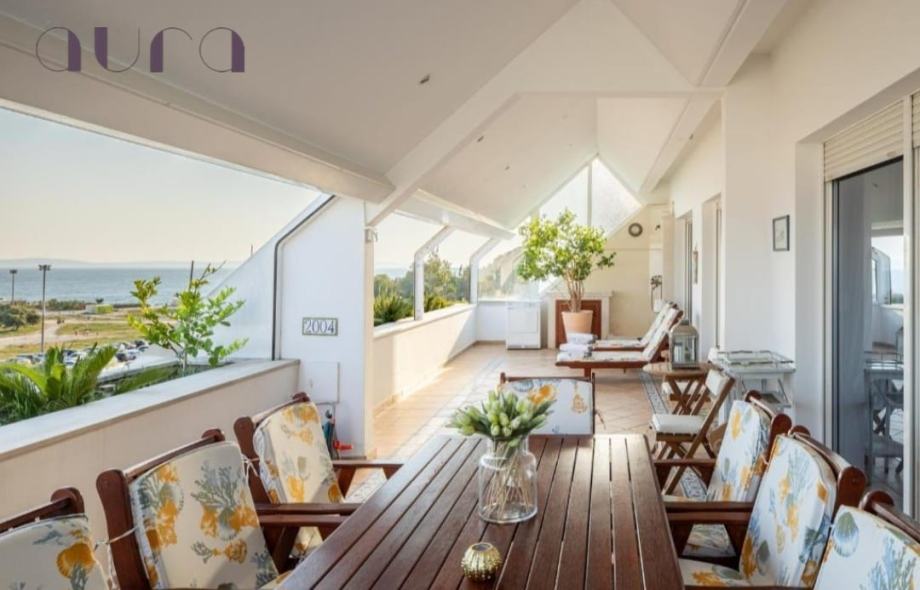 Jedna od najvećih prednosti ovog stana je prostrana, južno orijentirana terasa koja pruža neometan pogled na more, otoke i prekrasne zalaske sunca.