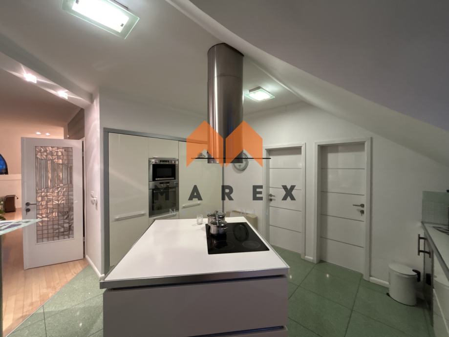 - Potkrovlje: - Četverosoban penthouse (190,70 m2) s tri spavaće sobe, dnevnim boravkom s izlazom na terasu, kupaonicom, zasebnim WC-om, potpuno opremljenom kuhinjom,te ima posebnu vrijednost dizajniranog stana, uređen s osjećajem za detalje, koji pruža privatnost i mir unutar samog centra grada.