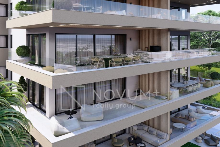 Prostrane južno orijentirane terase dizajnirane su za lounge namještaj, stvarajući savršeno mjesto za opuštanje uz panoramski pogled na more.