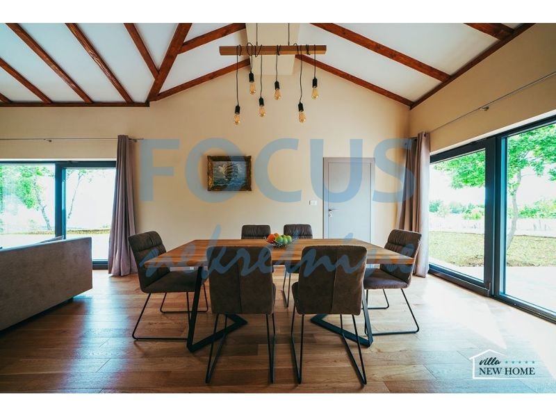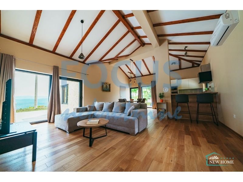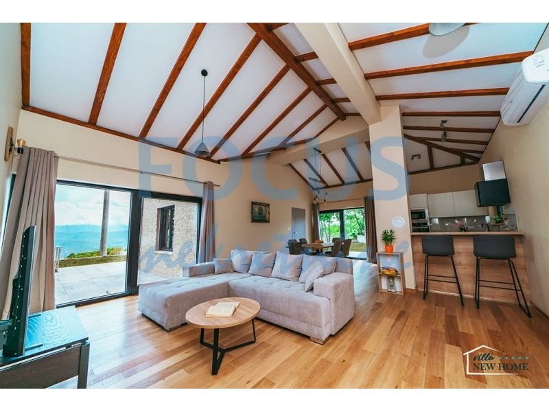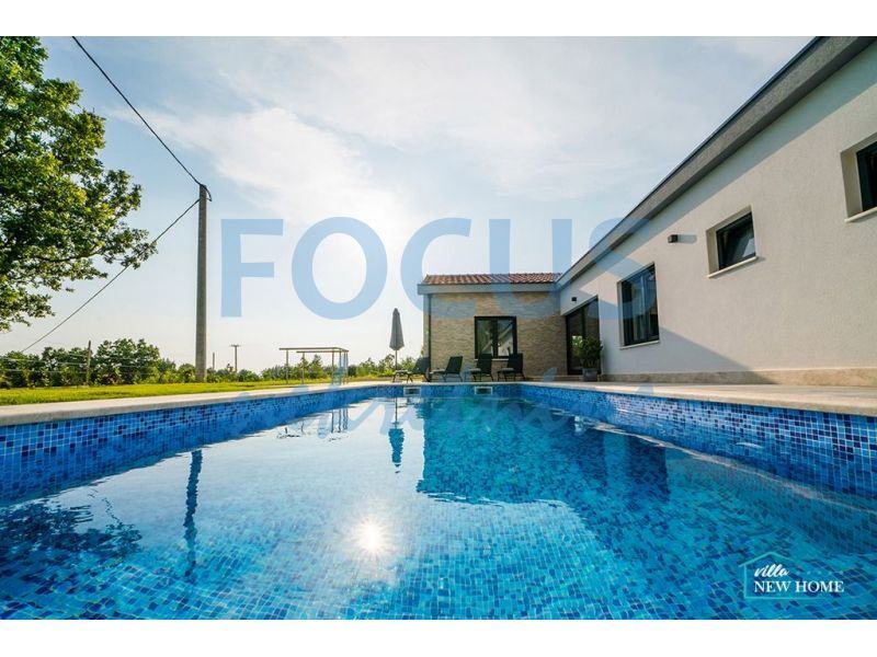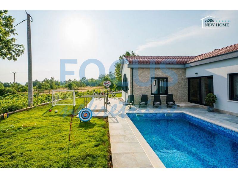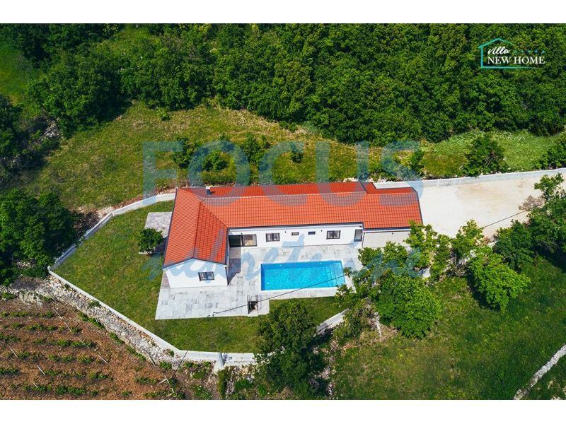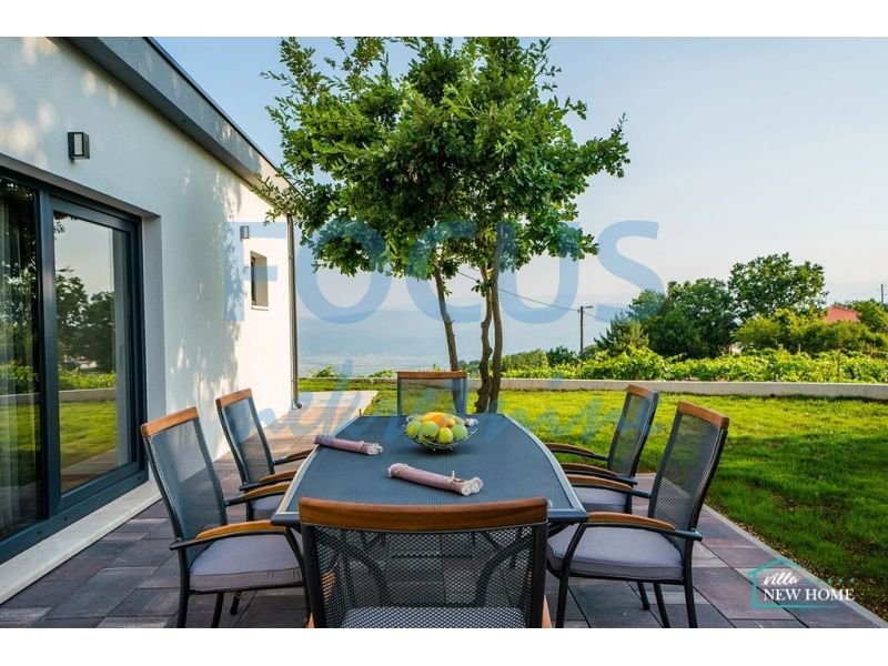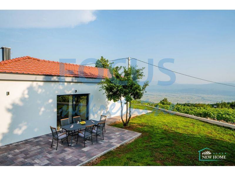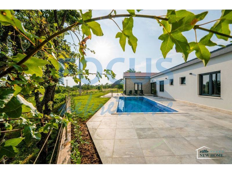 Exclusively we sell a luxurious ground floor house in Imotski with a beautiful view of the Imotski field and Biokovo. The object is completly finished, and the building is built according to the highest German standards. The house itself consists of a spacious entrance hall with a toilet, a kitchen with a living room from which you come out to a beautiful terrace in front of which there is a swimming pool and a large garden, also contains three spacious bedrooms with bathrooms of the highest standard and the house is ideal for categorization as a five-star holiday home. The house also has a large garage that is connected to the rest of the building. A project worth looking at. Plans and pictures available in the attachment.