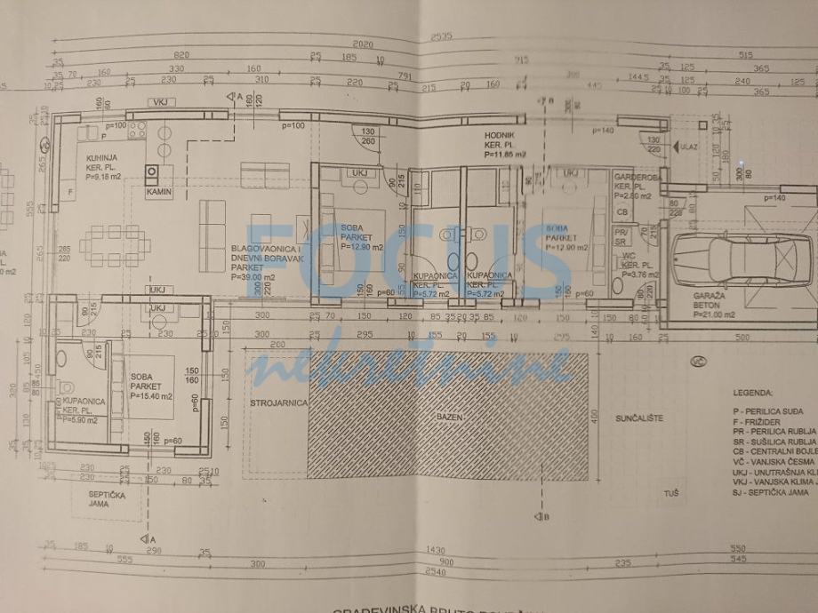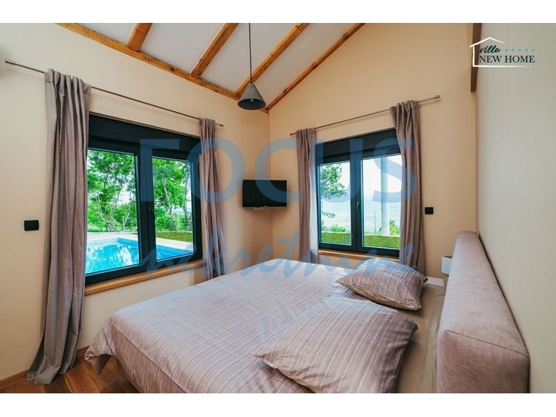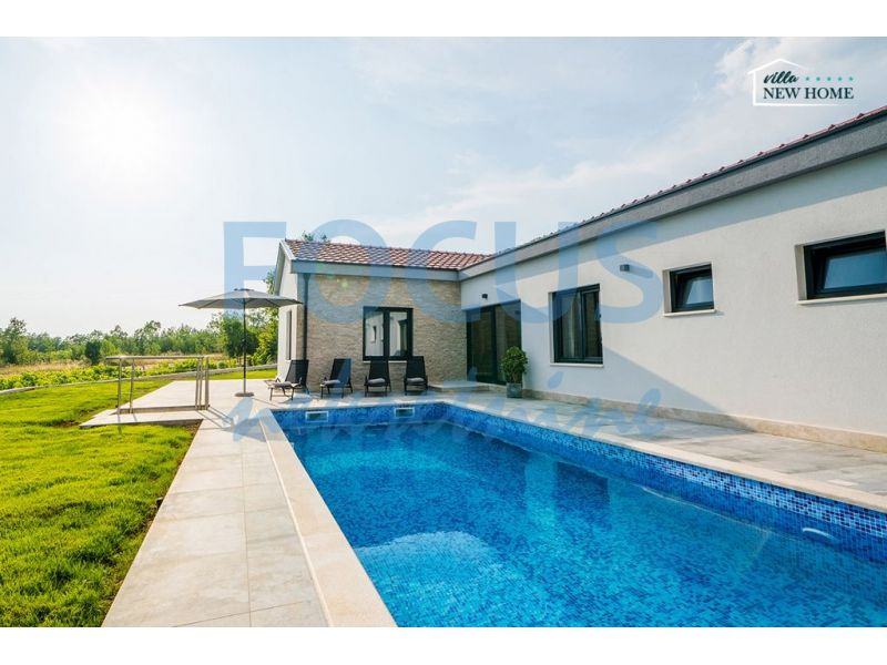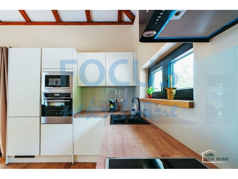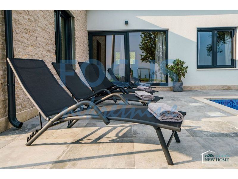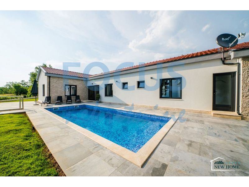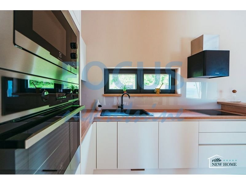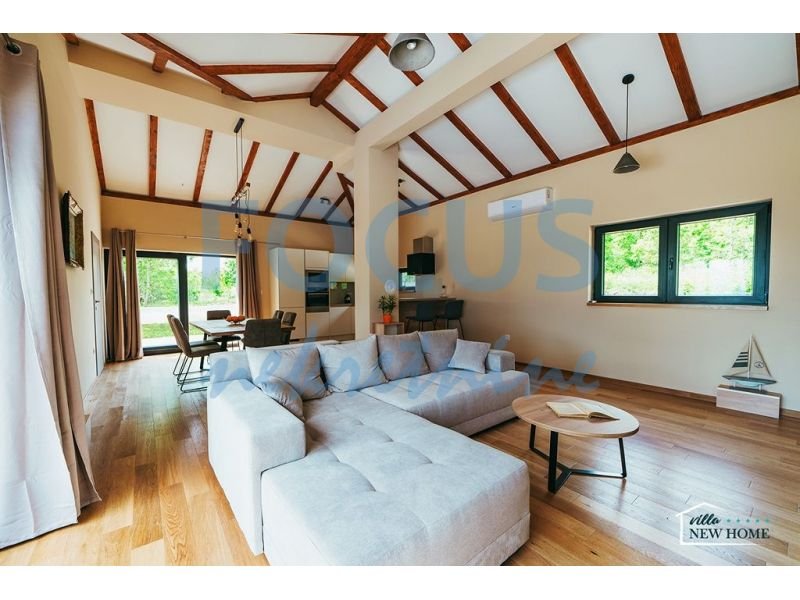 Exclusively we sell a luxurious ground floor house in Imotski with a beautiful view of the Imotski field and Biokovo. The object is completly finished, and the building is built according to the highest German standards. The house itself consists of a spacious entrance hall with a toilet, a kitchen with a living room from which you come out to a beautiful terrace in front of which there is a swimming pool and a large garden, also contains three spacious bedrooms with bathrooms of the highest standard and the house is ideal for categorization as a five-star holiday home. The house also has a large garage that is connected to the rest of the building. A project worth looking at. Plans and pictures available in the attachment.