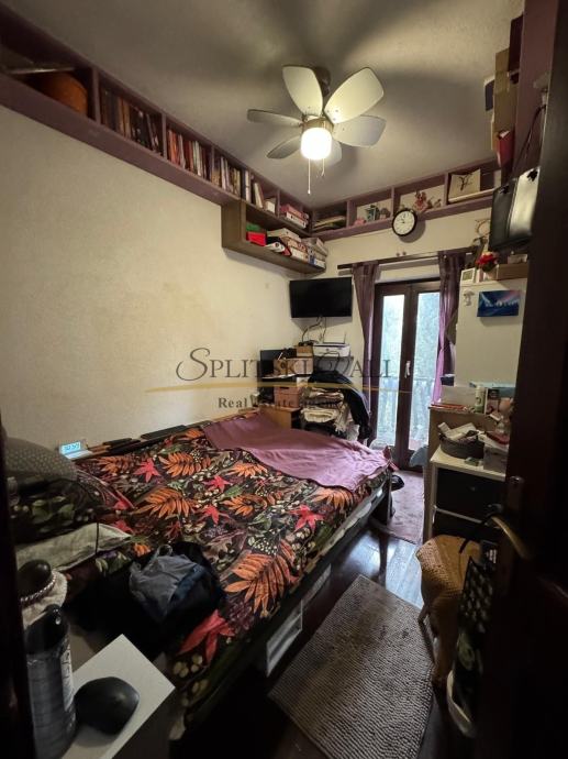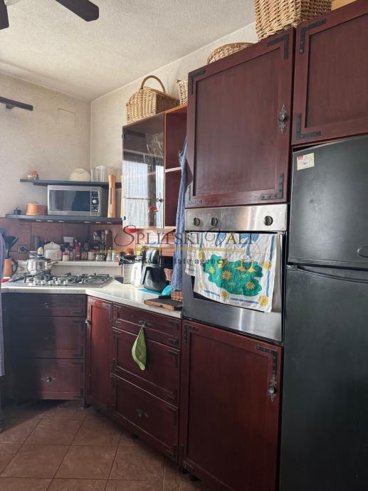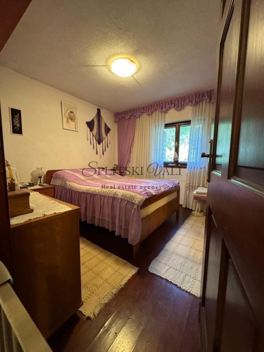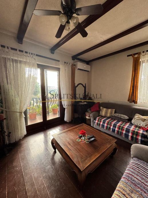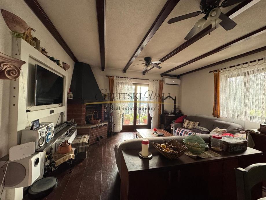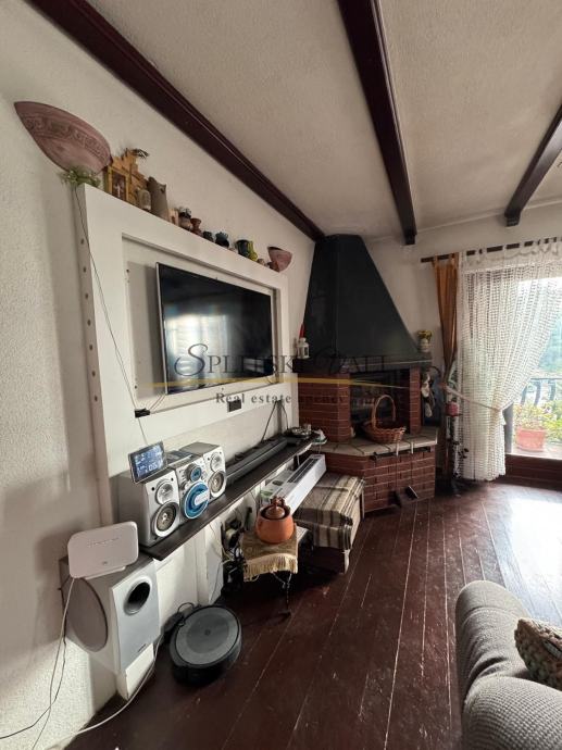 Sastoji se od 3 spavaće sobe, dnevnog boravka s kuhinjom, kupaonice, dodatnog WC-a,bačkona te velike terase s pravom nadogradnje.Interijer je uređen u drvu, s vidljivim drvenim gredama koje prostoru daju topao i autentičan dojam.