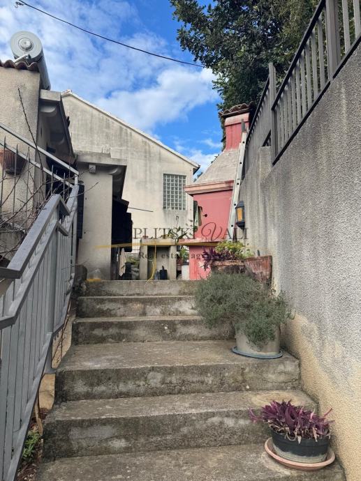 Posjeduje uređeno dvorište s dodatnim prostorom za parkiranje te mogućnošću izgradnje bazena iza kuće, gdje se također nalazi i kamin te kaskadni vrt.