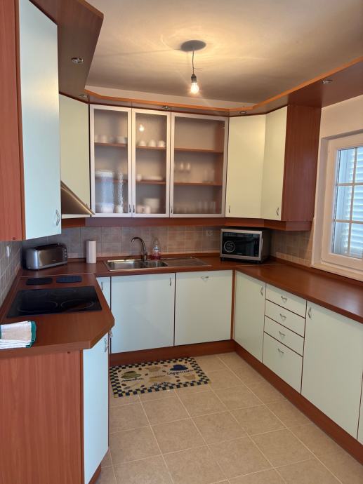 Cijeli stan je opremeljen namještajem po mjeri koji je u potpunosti očuvan s obzirom da se nekretnina koristila samo povremeno, što omogućuje brzo i jednostavno useljenje bez dodatnih ulaganja. Mirna i ugodna stambena zgrada.