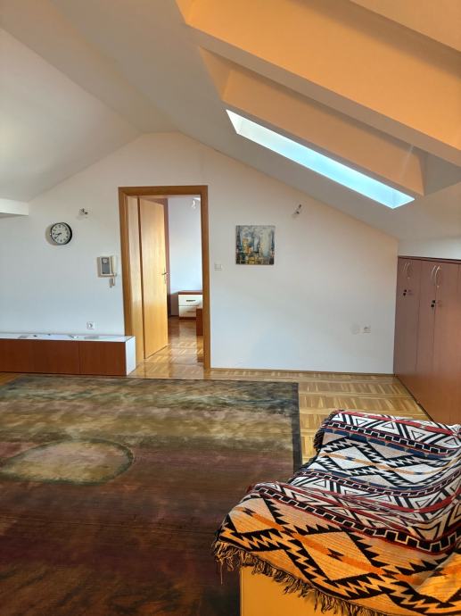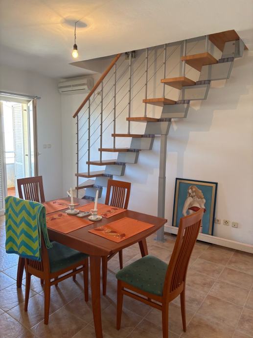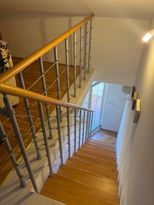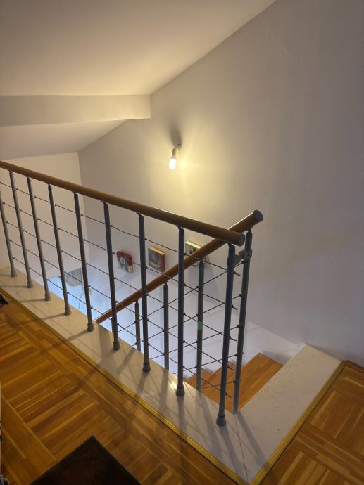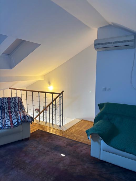 Ovaj dvoetažni i potpuno namješten stan sastoji se od 2 spavaće soba, dok master spavaća soba ima svoju kupaonicu, kuhinje, blagovaonice, wc, prostranog dnevnog boravka i balkona.