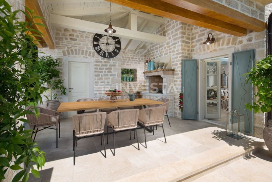 Prodaje se luksuzna kamena vila površine od 372 m2, okružena zelenilom i prekrasnim pogledom na morsko plavetnilo sa prostranom okućnicom od 1299 m2.