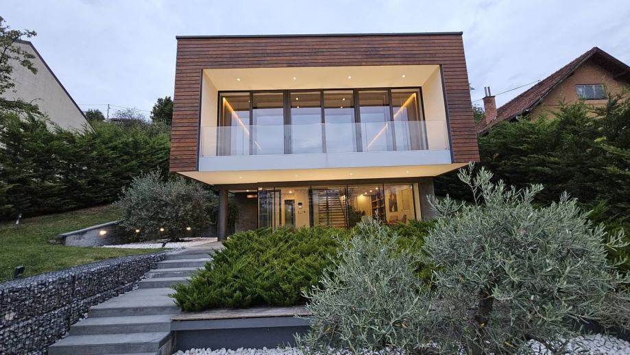 Južne orijentacije s otvorenim pogledom na okruženje ova kuća svojim korisnicima osigurava potpuni komfor, mir i privatnost van gradske vreve, a sa svim sadržajima potrebnim za ugodan boravak u neposrednoj blizini, ali s druge strane svega nekoliko minuta vožnje od samog centra grada Zagreba.