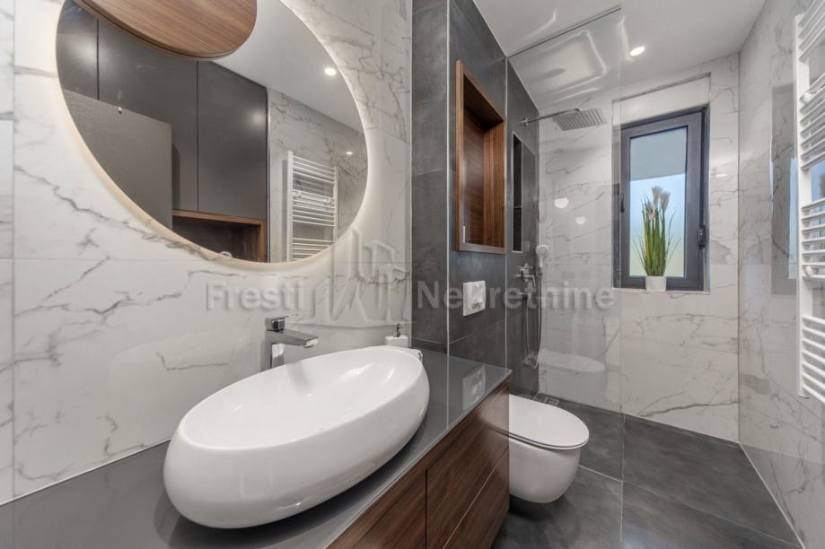 3 moderno uređene spavaće sobe s kupaonicama, netto korisne površine 11.94, 14.87 i 14.34 m2 (svaka spavaća soba ima ukomponiranu garderobu površine 3 m2)
