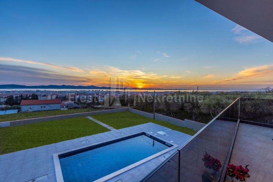 Ova prekrasna vila smještena je na rubnom djelu grada Zadra s neumoljivim pogledom na jadranski biser i otoke. Udaljena tek 2,5 km od mora, ova je vila izvrstan izbor za sve one koji tragaju za luksuznim suživotom na periferiji grada ili pak ljetnim odmorom u aktivnom okruženju savršenom za ljetovanje s obitelji ili druženje s prijateljima.