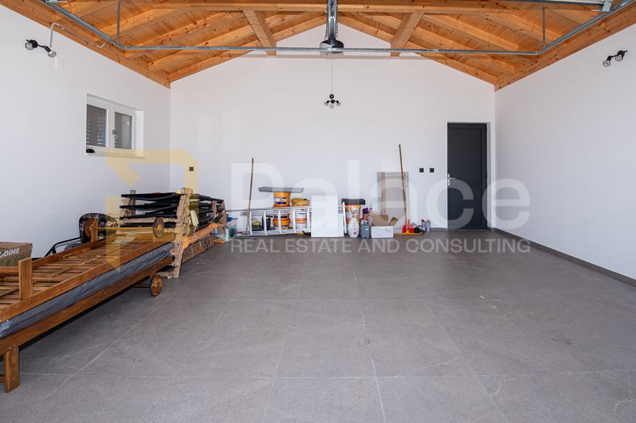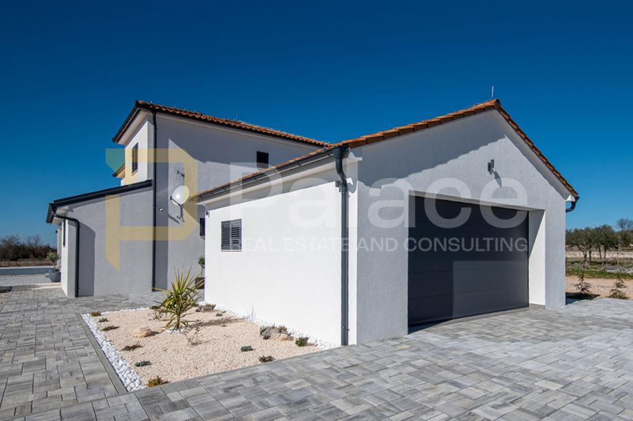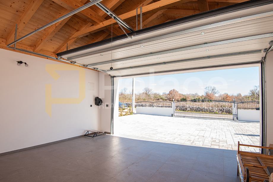 Nekretnina također raspolaže garažom s dva parkirna mjesta, opremljenom električnom punionicom za vozila, čime vila prati suvremene standarde održivog i modernog stanovanja.