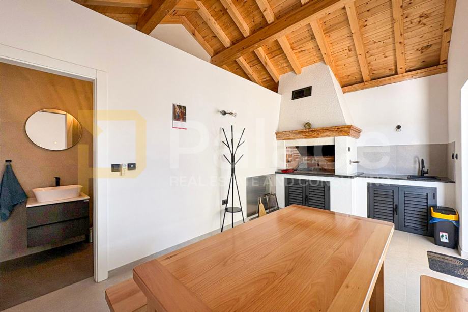 Dodatni sadržaji uključuju vrtnu kućicu s roštiljem, idealnu za obiteljska okupljanja i druženja s prijateljima.