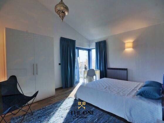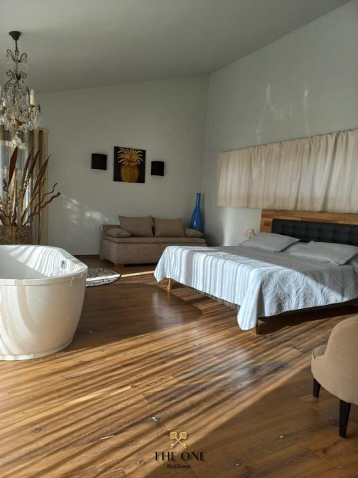 Na istoj etaži su dvije spavaće sobe svaka s vlastitom kupaonicom. Jedna spavaća soba ima walk-in ormar, dok druga spavaća soba u sklopu kupaonice ima saunu. Gostinjski toalet je na istom katu. Na prvom katu su tri spavaće sobe, svaka sa svojom kupaonicom te balkonima.