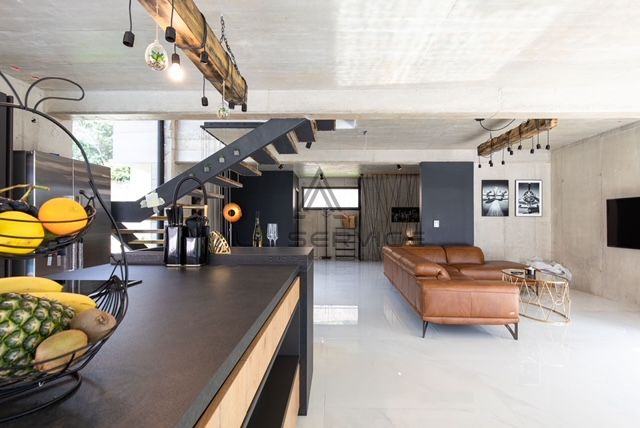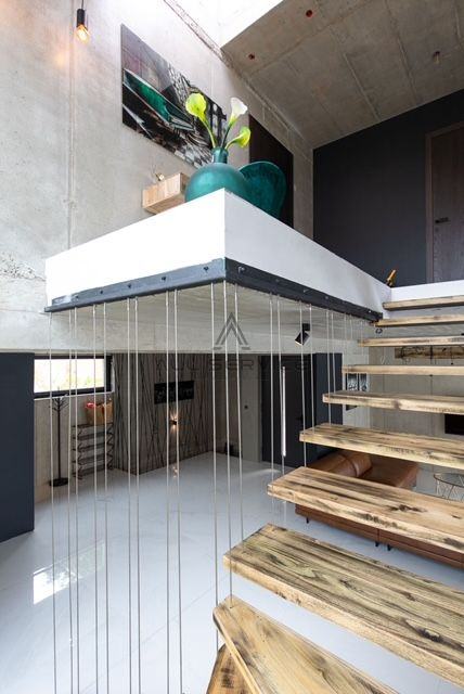 Spavaće sobe i cijela etaža uređene su u suvremenom industrijskom stilu.